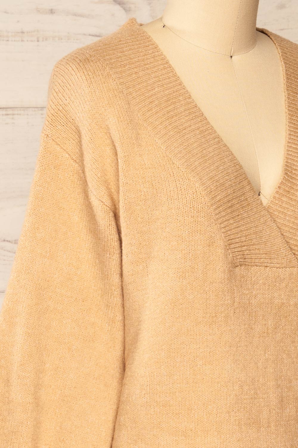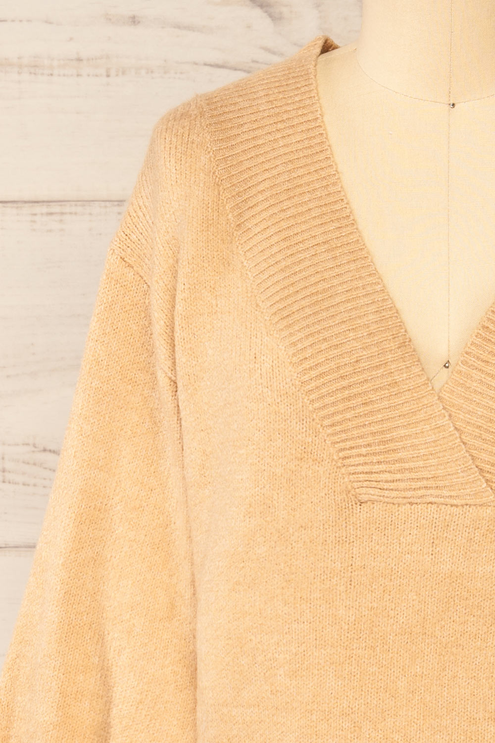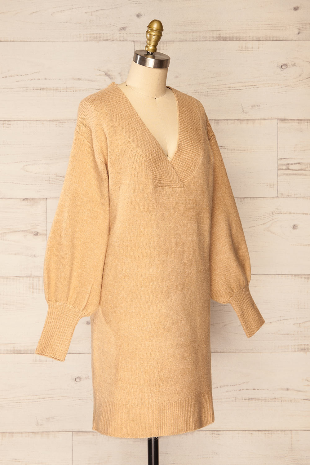 Wouna | Robe Beige Courte en Tricot à Col en V