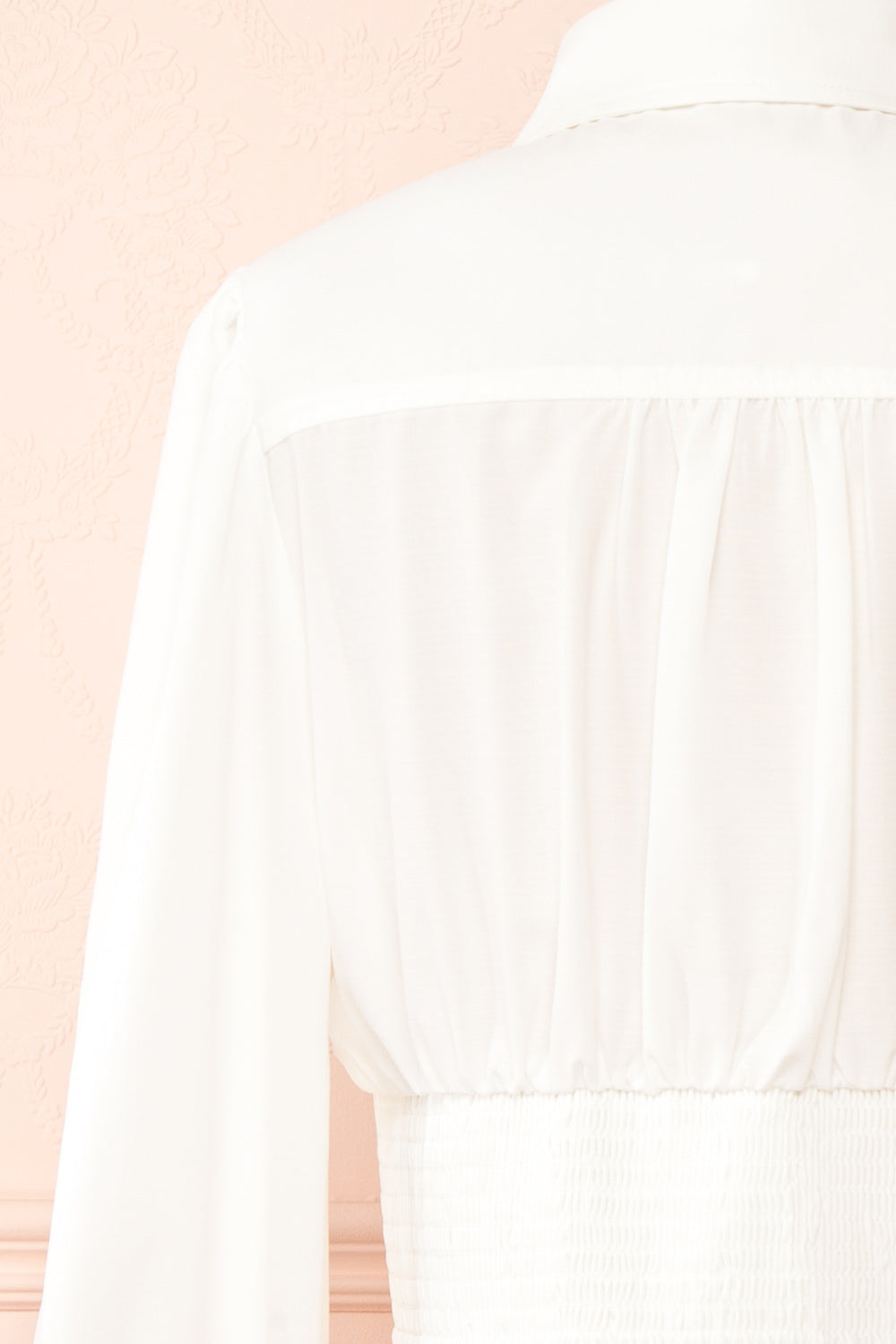 Ce charmant chemisier s'avèrera un atout pour votre garde-robe que ce soit pour vos tenues professionnelles ou décontractées! Son dos élastique vous garantira confort tout au long de la journée et vous aimerez ses atouts tels que ses manches légèrement bouffantes ainsi que ses plis qui lui ajoutent une touche romantique. Agencez-le avec votre jean favori pour une tenue de tous les jours ou une jupe pour une tenue de bureau impeccable!