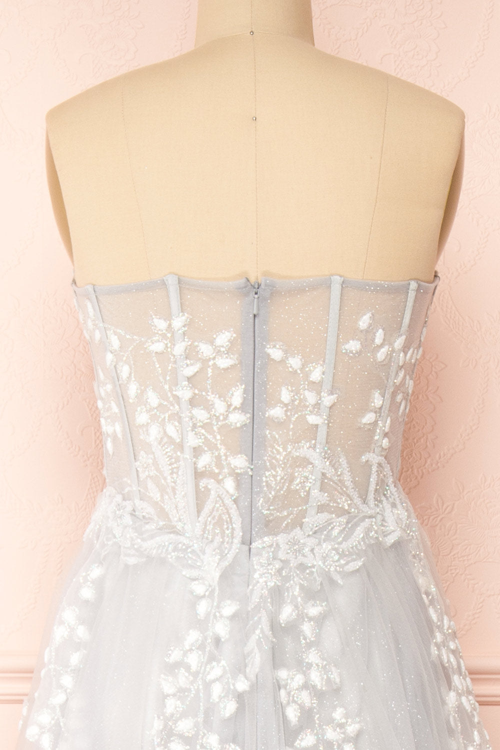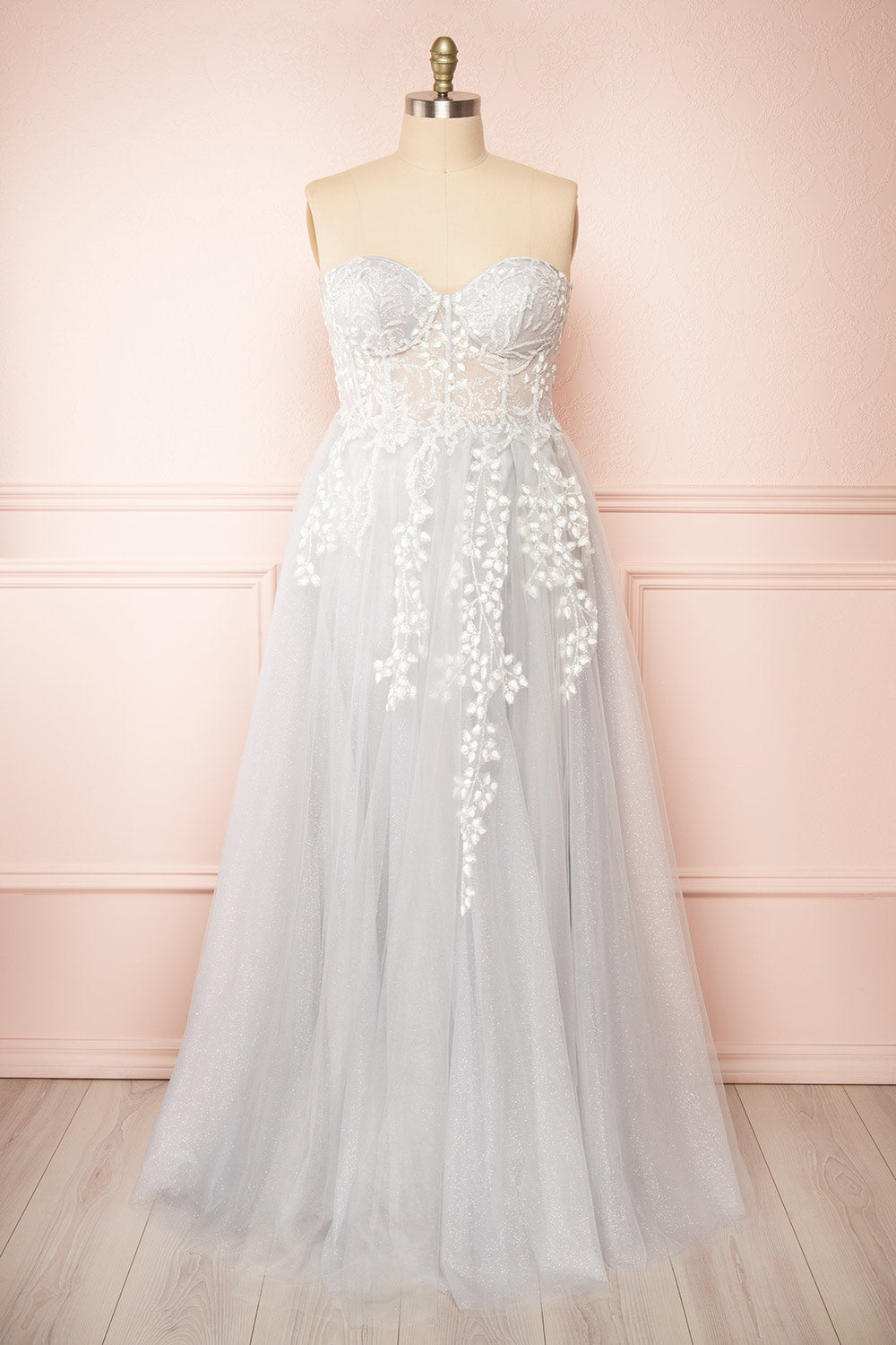 Ylouis Bleu | Robe Maxi Bustier avec Broderies