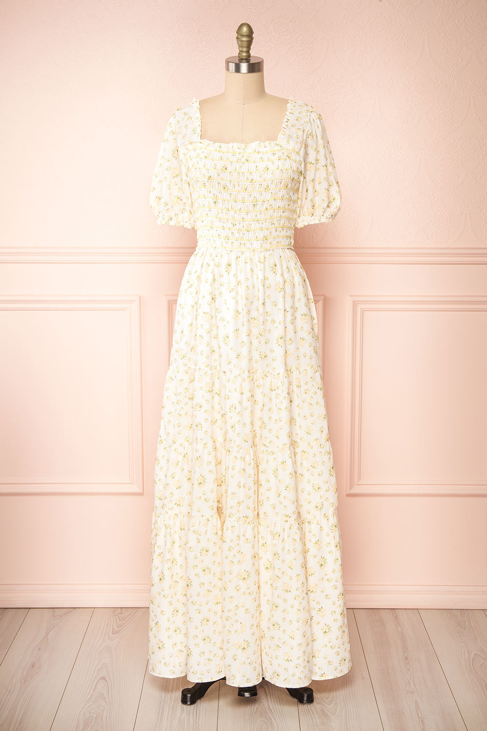 Laissez votre côté champêtre briller avec cette magnifique robe midi à fleurs! Vous craquerez à coup sûr pour le corsage froncé, agrémenté d'une encolure carrée, qui encadrera à merveille votre buste. Sa coupe décontractée vous offrira beaucoup de confort tandis que sa taille extensible le rend facile à enfiler. Ses manches bouffantes ajoutent un charme délicat à la pièce.