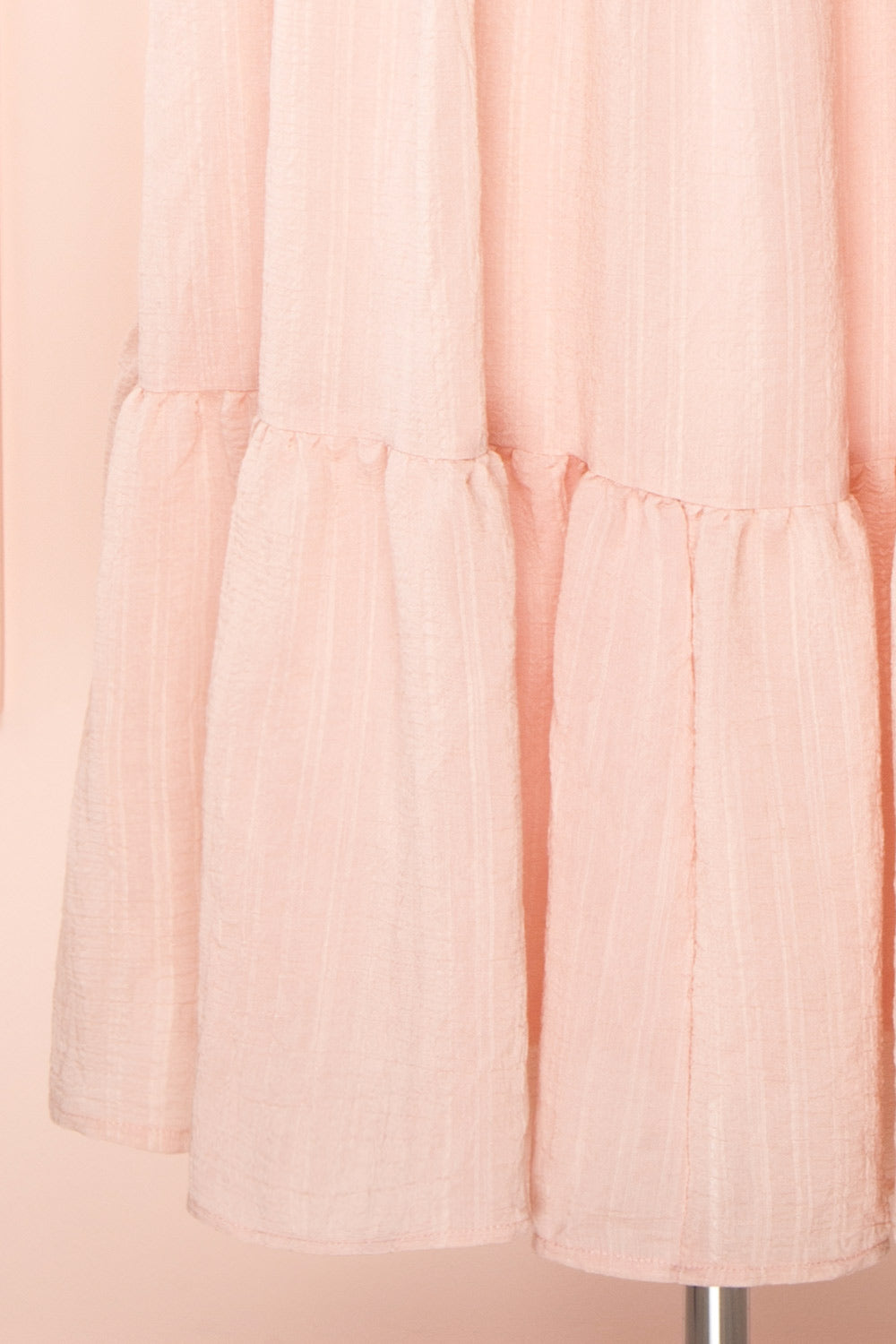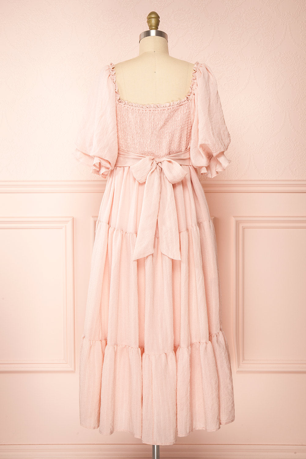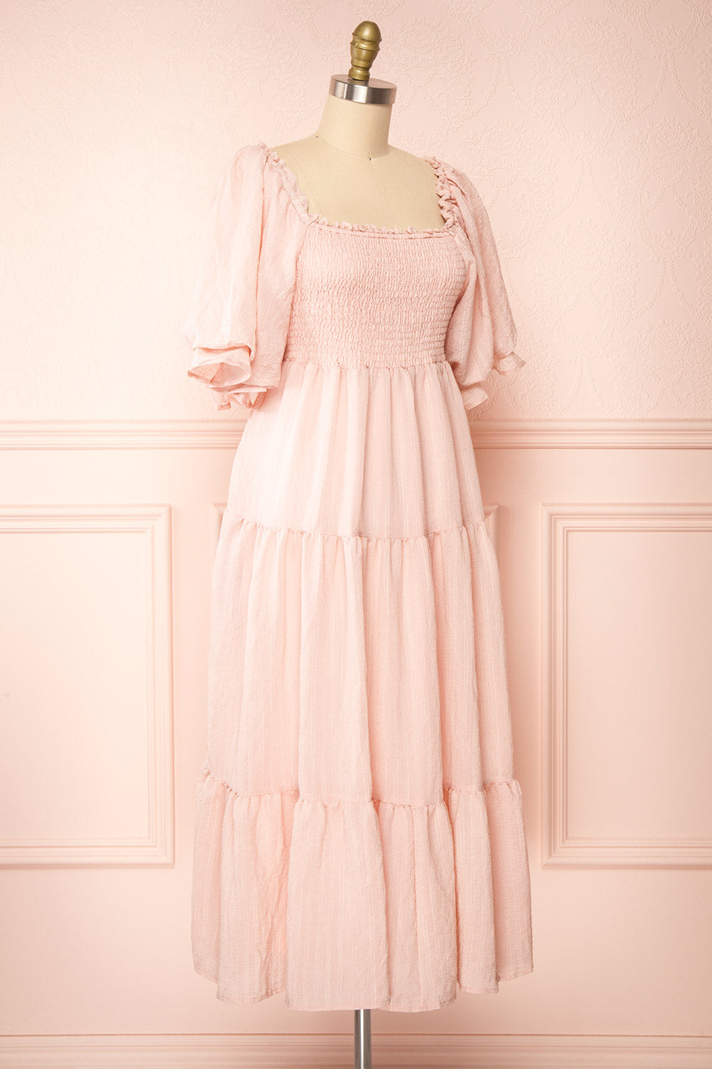 Abra Pink | Tiered Midi Dress w/ Puffy Sleeves