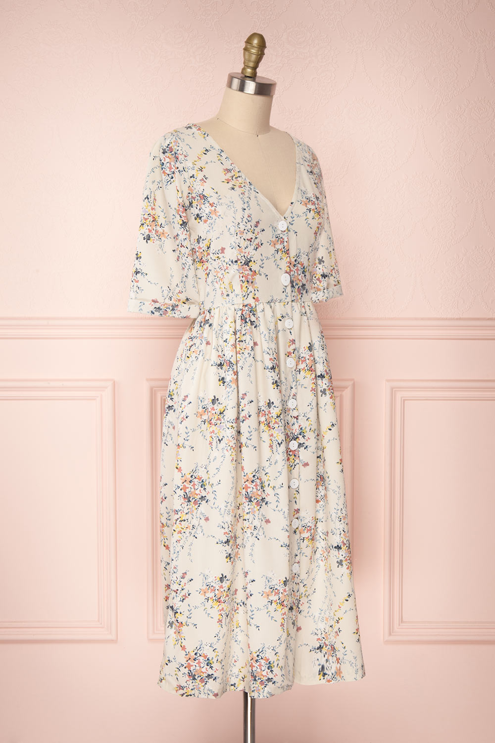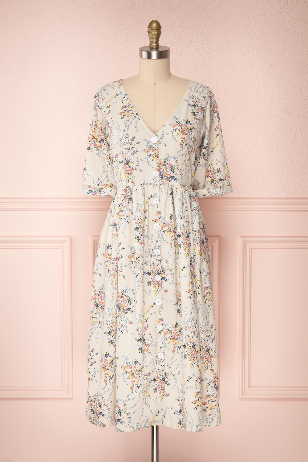 Celebrate colourful nature with this lovely floral dress! The A-line cut features a practical and charming button-up front, and the lightweight fabric overlays a comfortable chiffon lining. Pair it with white sneakers and a hair ribbon for a dazzling spring outfit!