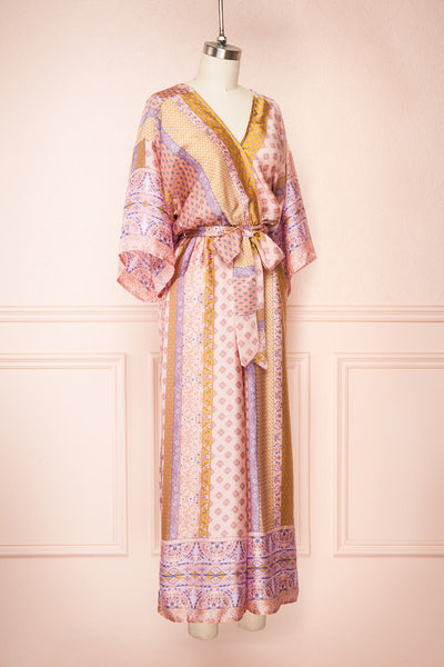 Aliie Pink | Patterned Faux Wrap Jumpsuit