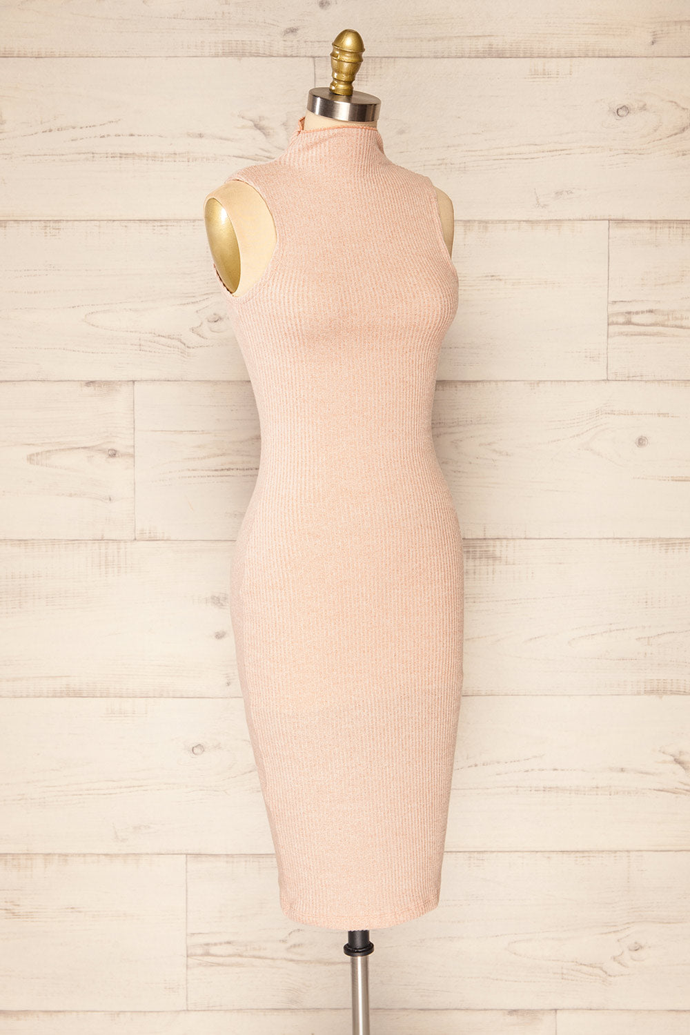 Alvarus Blush | Sleeveless Fitted Midi Dress w/ Mock Neck