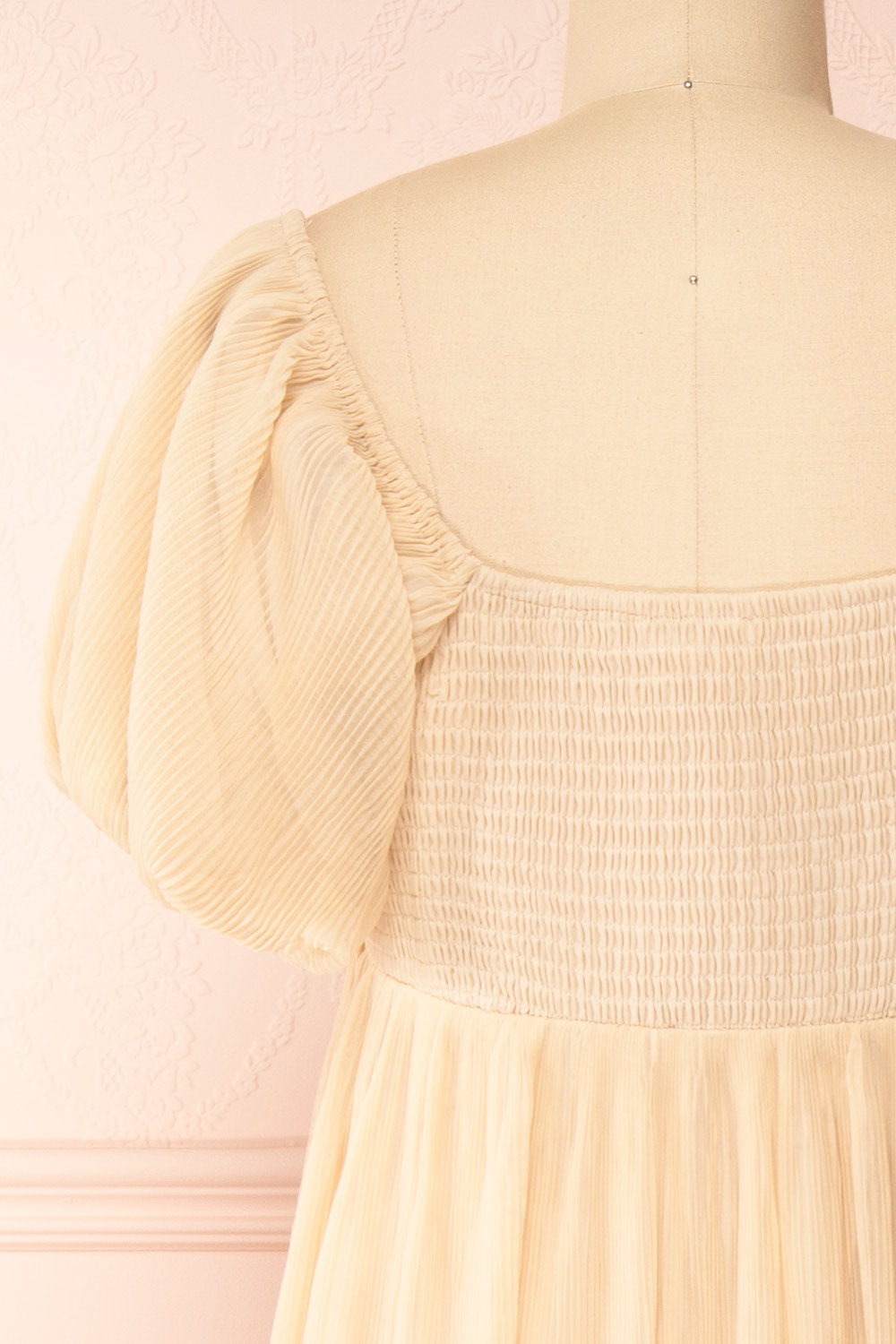 Araminta Beige | Pleated Beige Maxi Babydoll Dress