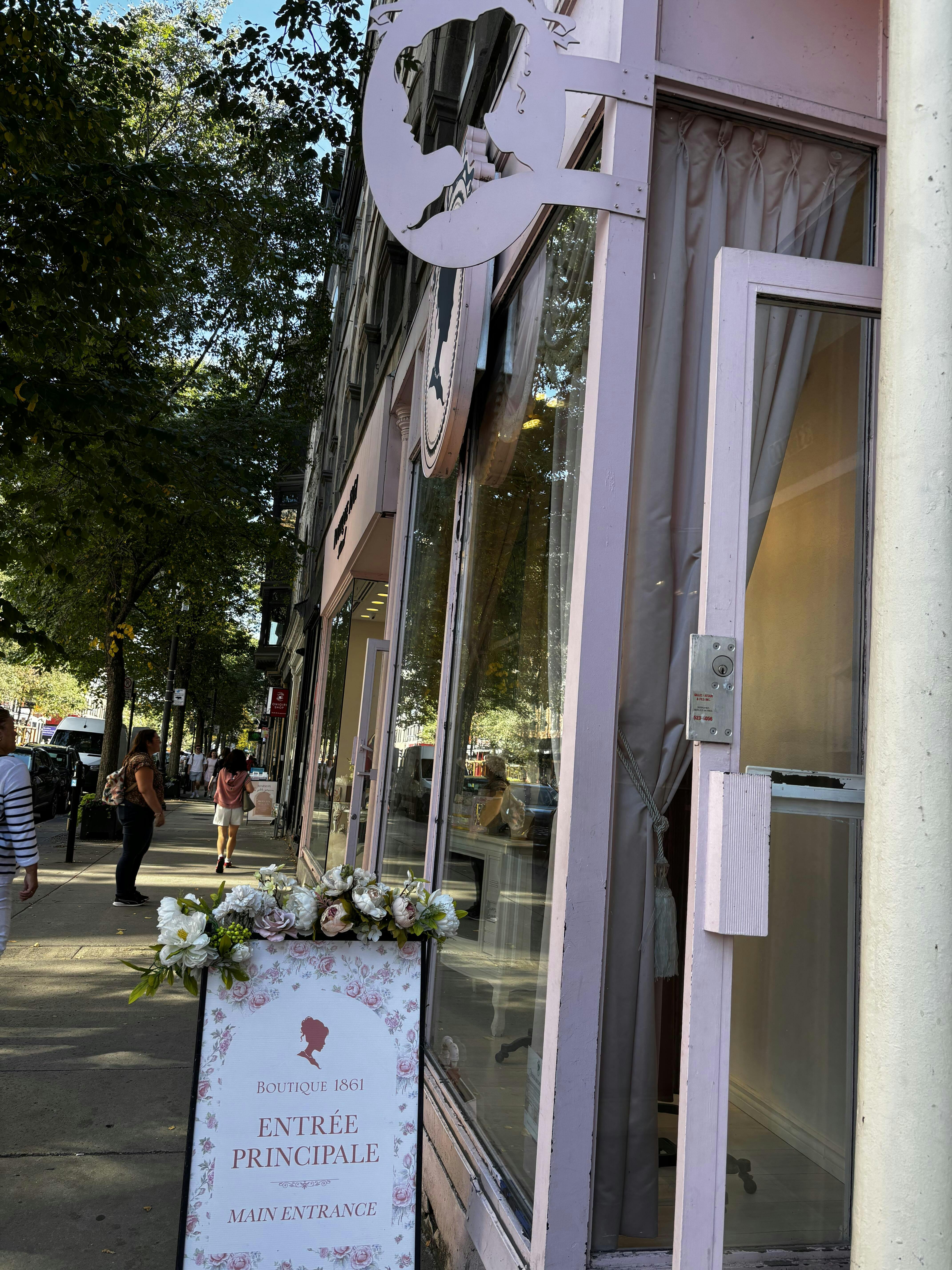 Le Boudoir 1861 est situé à l’étage de la boutique 1861. Pour y accéder, il suffit d’emprunter les escaliers par la porte située juste avant l’entrée de la Boutique 1861. En montant, vous découvrirez un univers de romance et de raffinement.