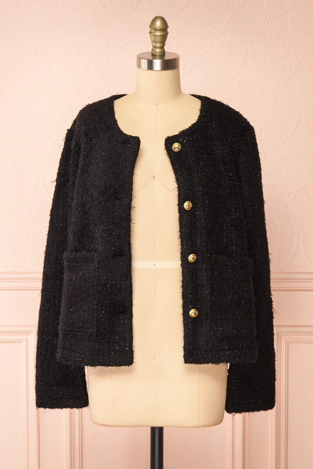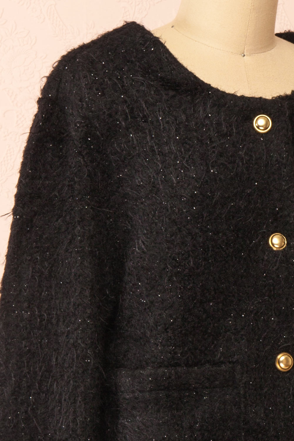 Avalee Black | Fuzzy Knit Cardigan w/ Pockets
