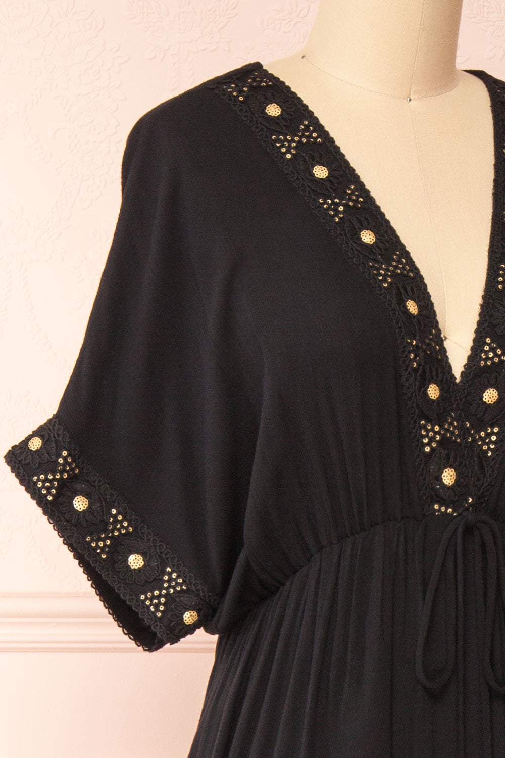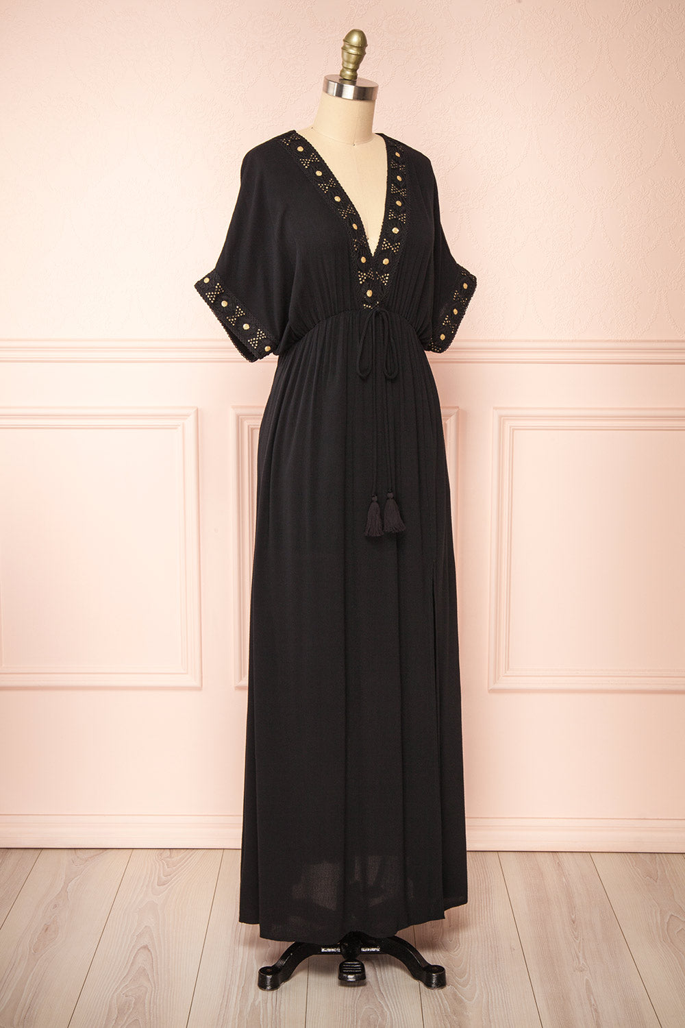 Avalon Black | Short Sleeve Maxi Dress w/ Embroidery
