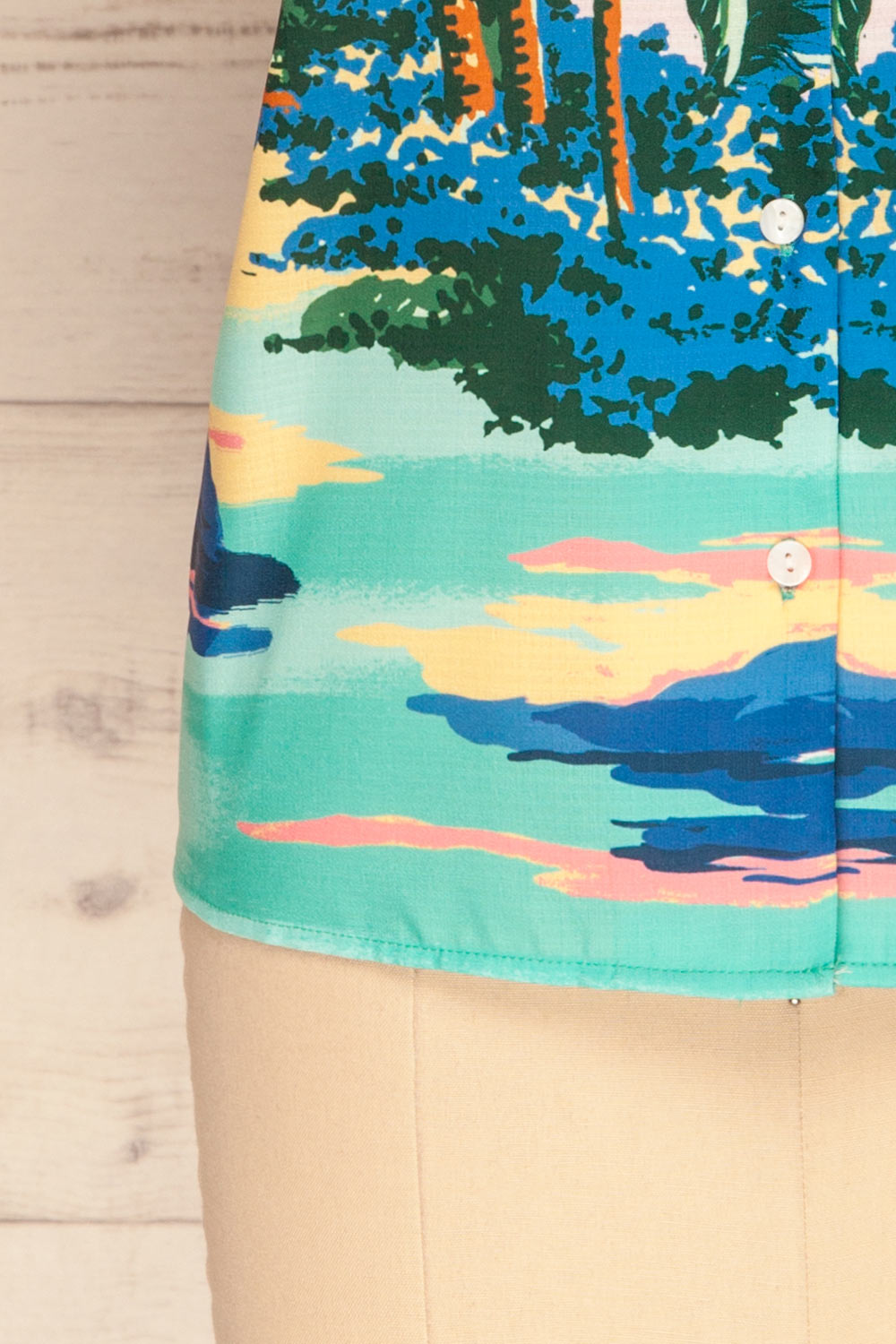 This little tropical shirt will instantly give you the impression of being able to sense the warm sea breezes and the salt water! Its loose fit, as well as its smooth and lightweight weave will keep you at ease all day long, even in hotter weather. The buttons down the front are practical.