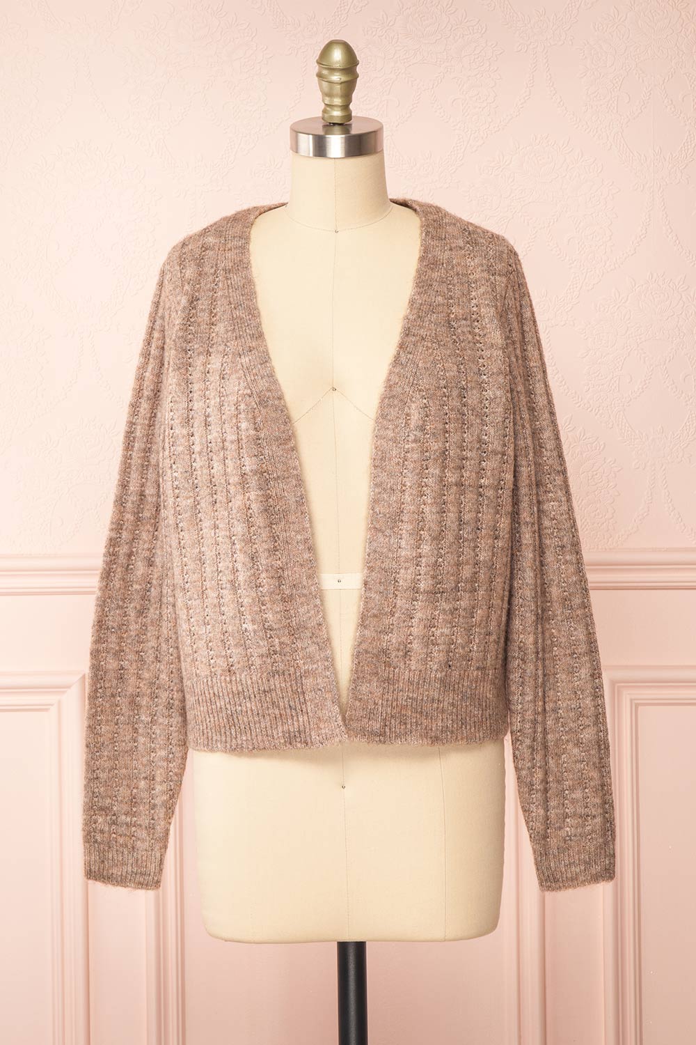 Bezie Taupe | Knit Open-Front Cardigan
