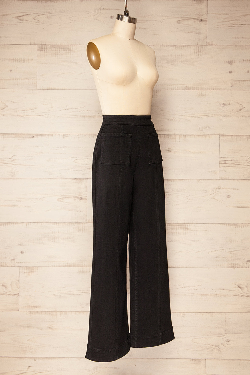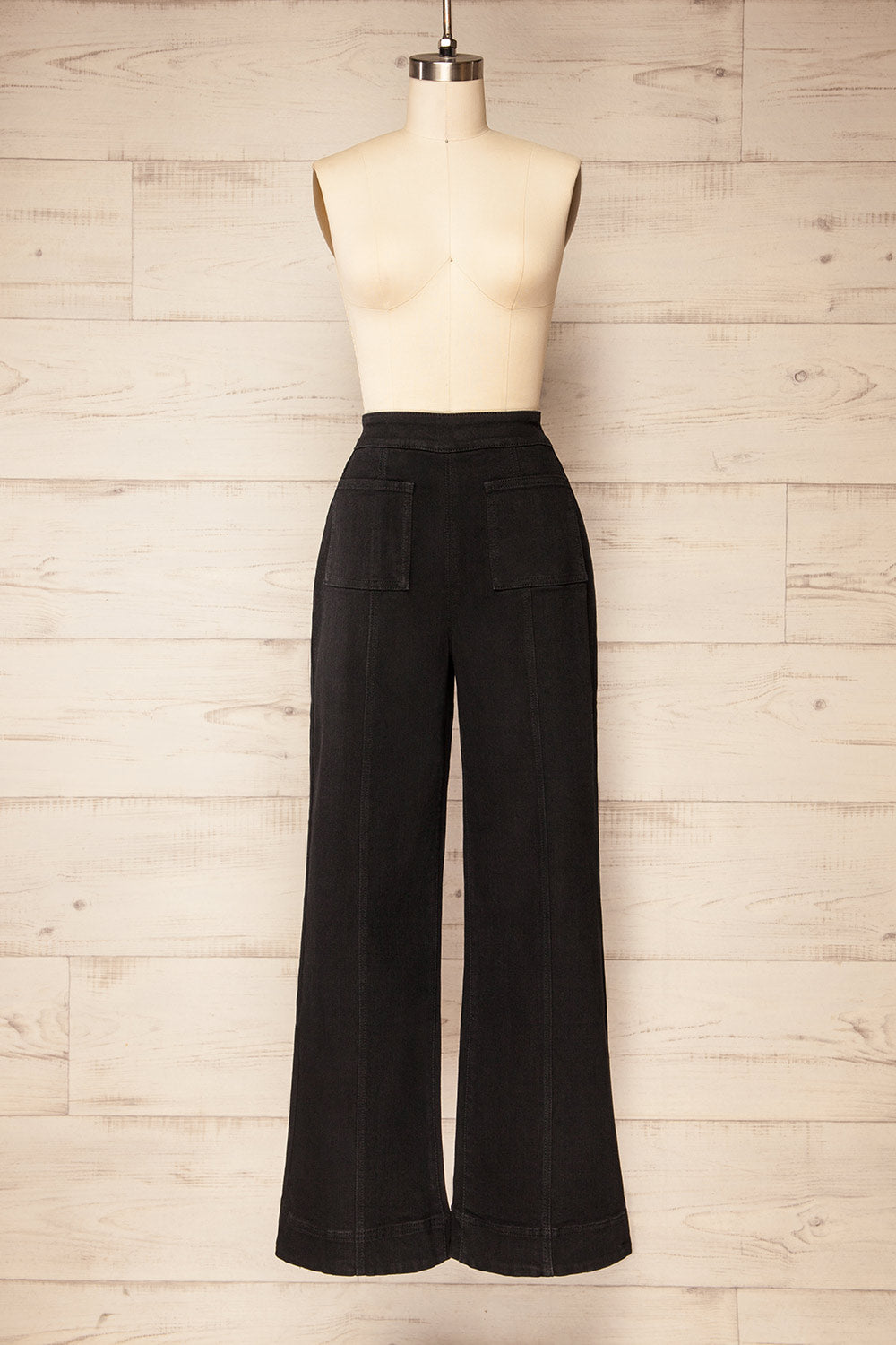 Add that retro feel to your wardrobe collection with these straight-leg black jeans. This versatile high-waisted denim piece will be a new favourite as you can simply style with almost anything and look fabulous regardless. You’ll love the details such as the front patch pockets and the functional silver back zipper that makes it unique!