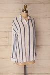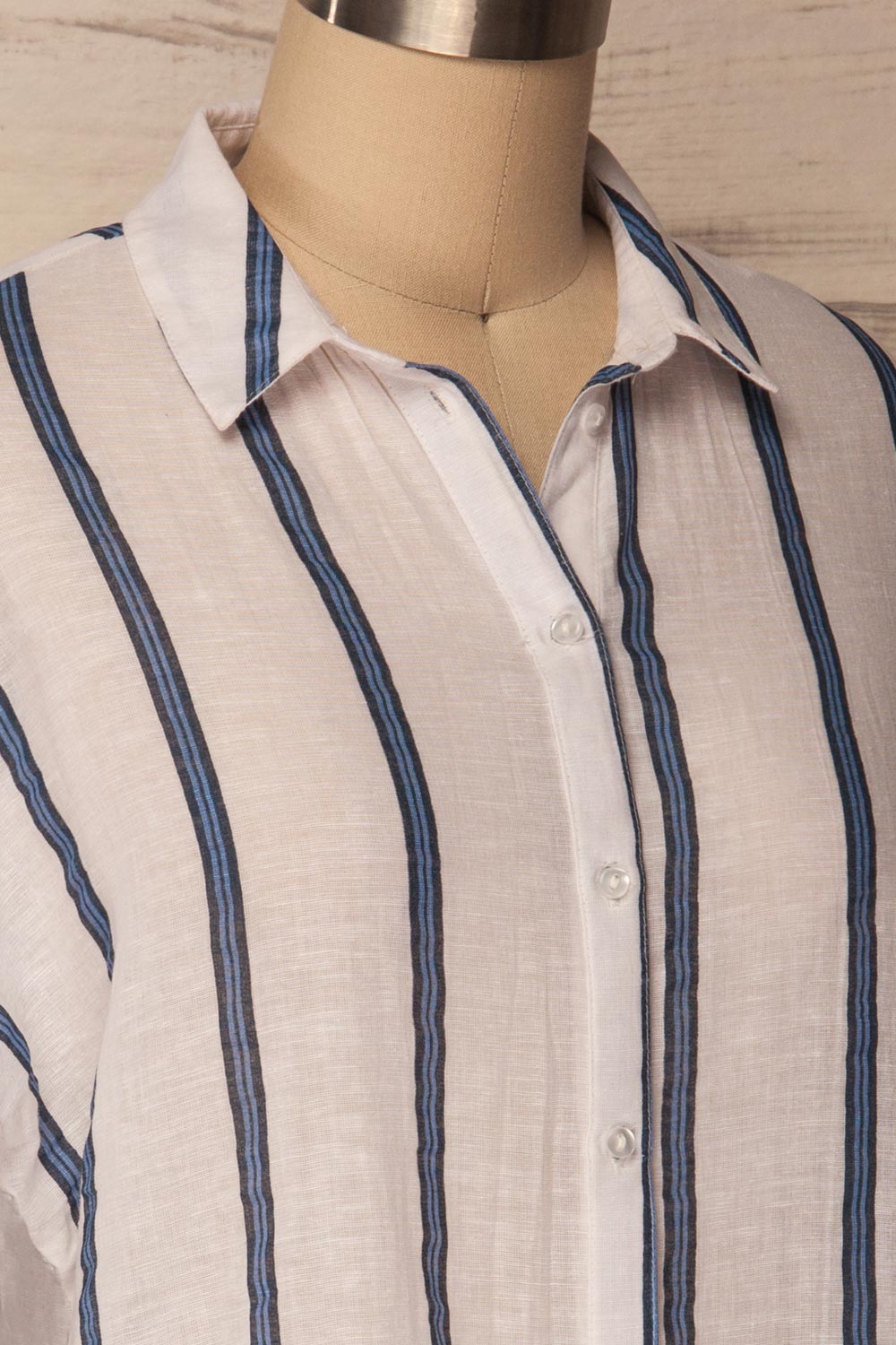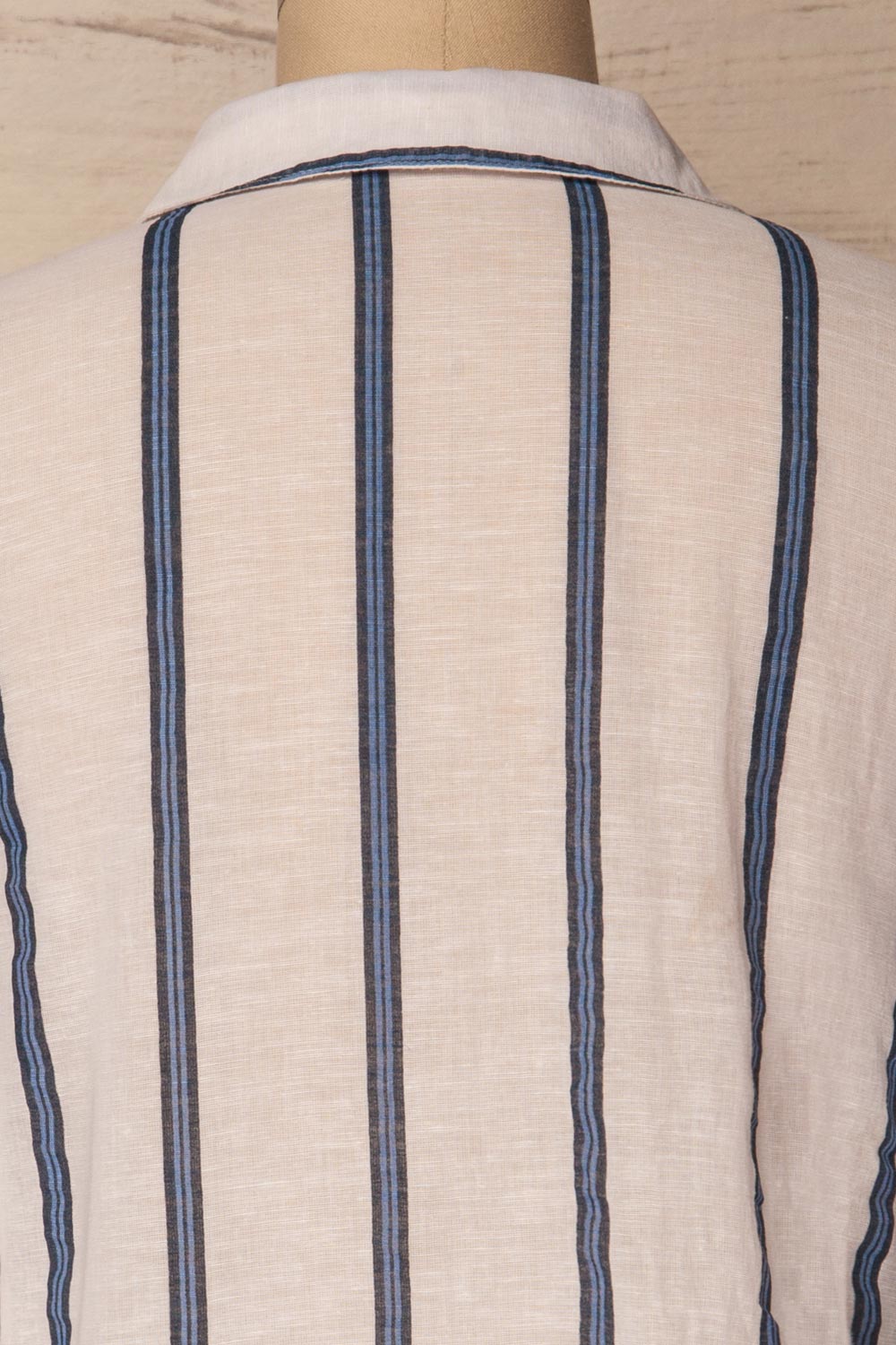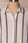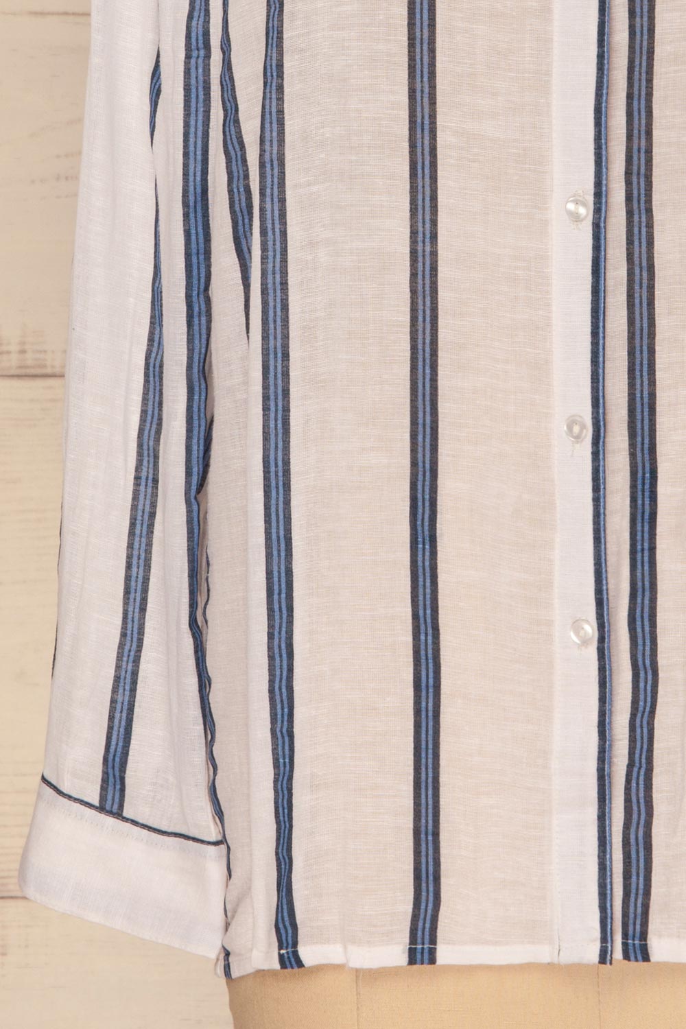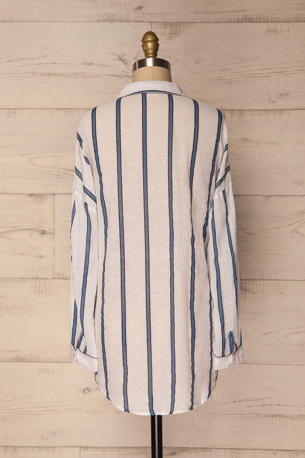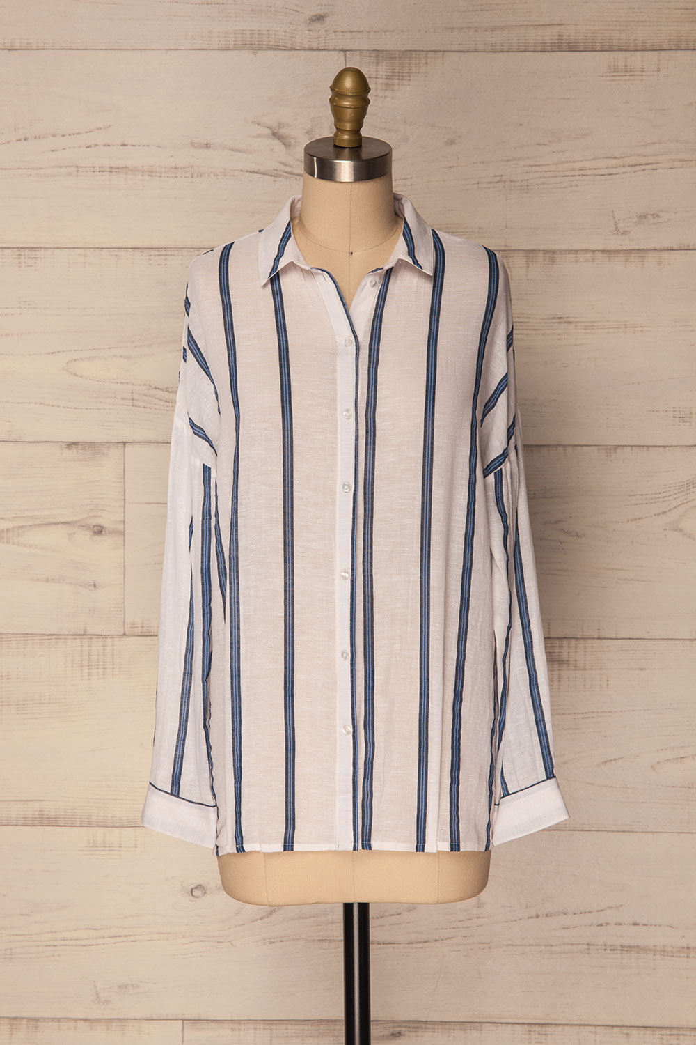 Fall under the charm of this blouse! You'll be confortable, thanks to its lightweight fabric and loose fit. The vertical stripes gives a classic but colorful look to this top. Buttons down the sleeves will allow you to untie and roll them for a more casual look. Wear it open with a tank and a pair of jeans, or over your favorite bathing suit as well!
