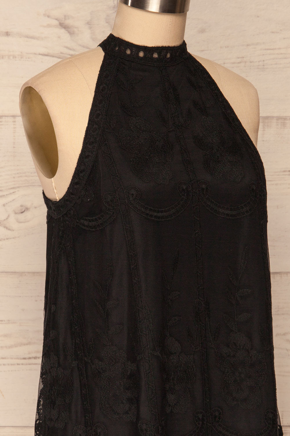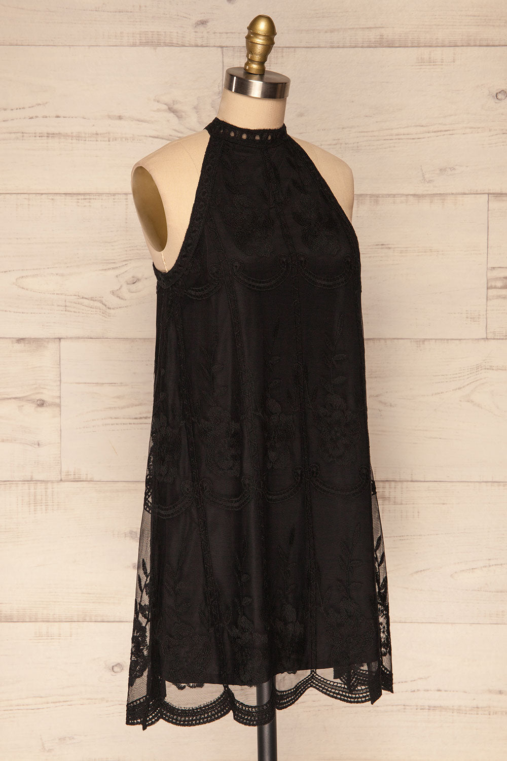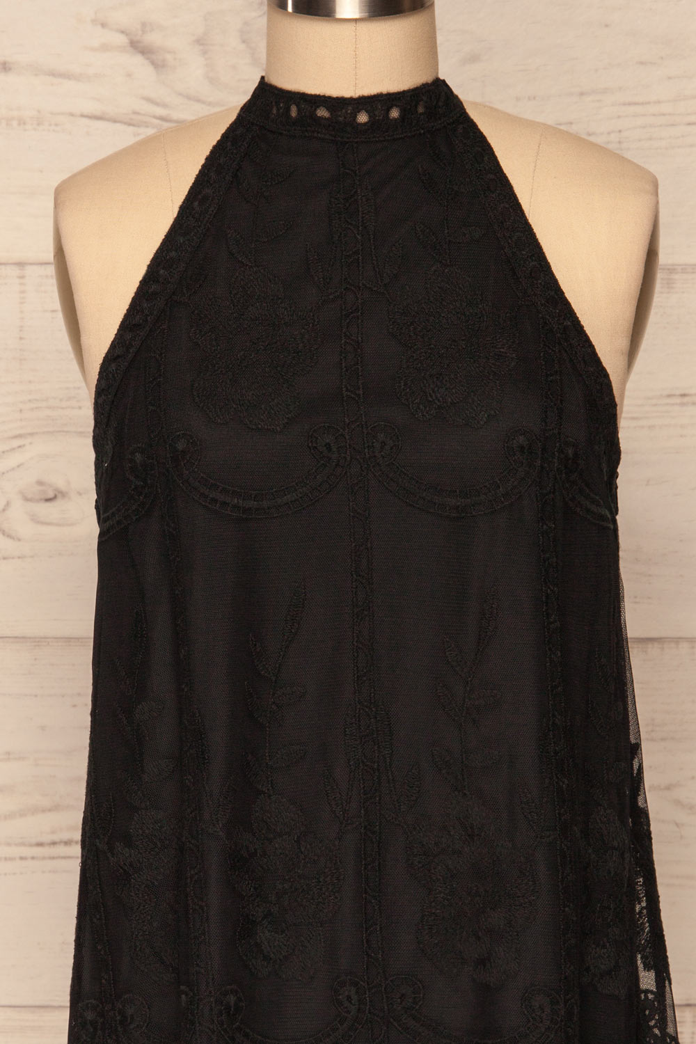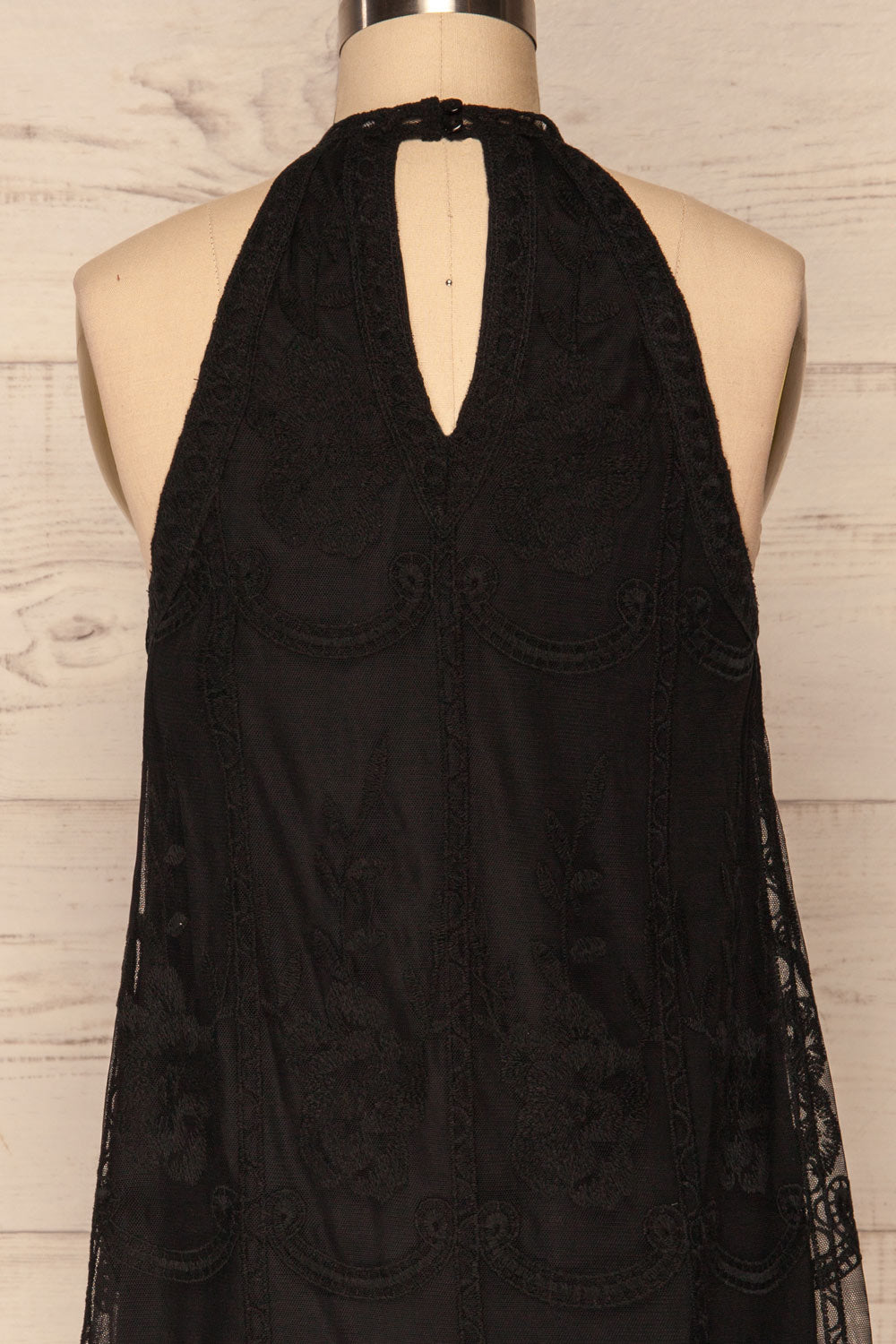 This classic dress is a romantic option for all your special occasions! Its flared cut and stretchable lining will provide daylong comfort, while the embroidered lightweight mesh will stand out. The halter neckline can be tied at the nape of the neck with two buttons.
