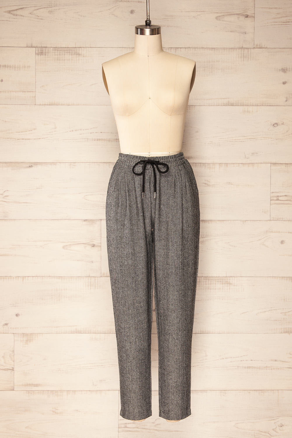 Bologne Black | High-Waisted Straight Leg Chevron Pants