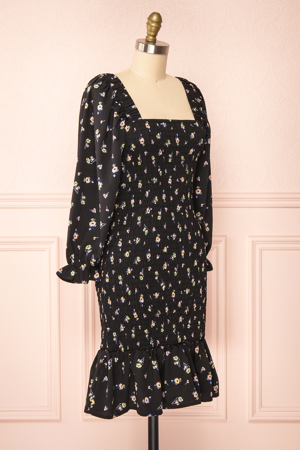 Bourgas | Short Ruched Dress w/ Floral Pattern