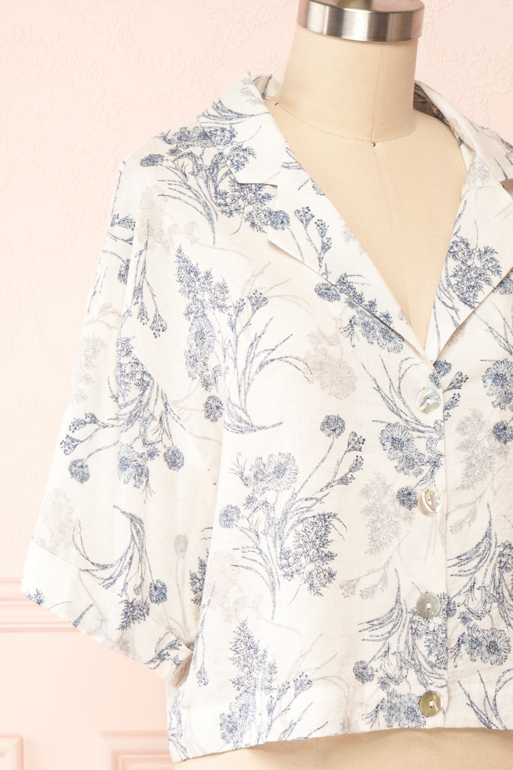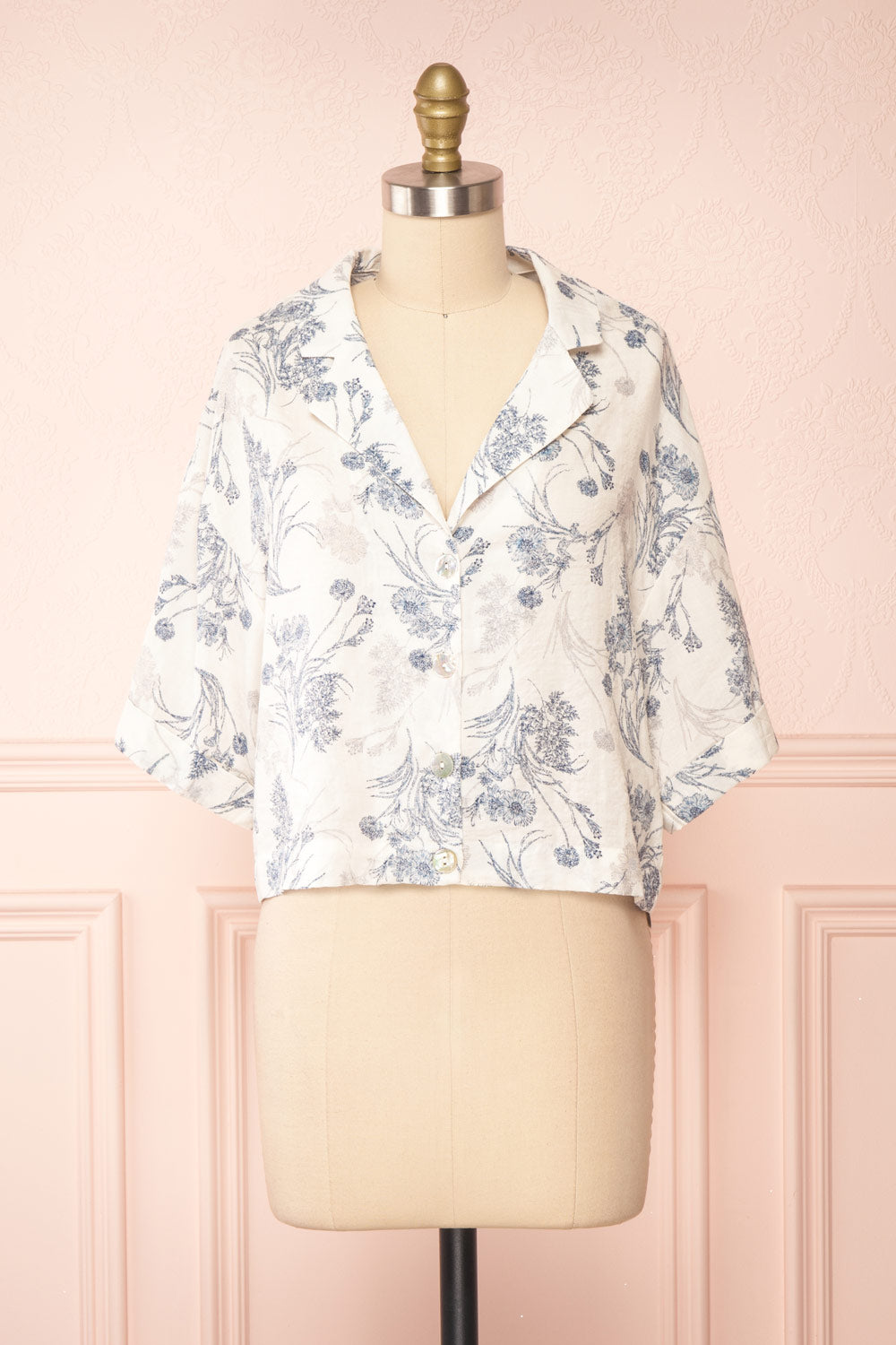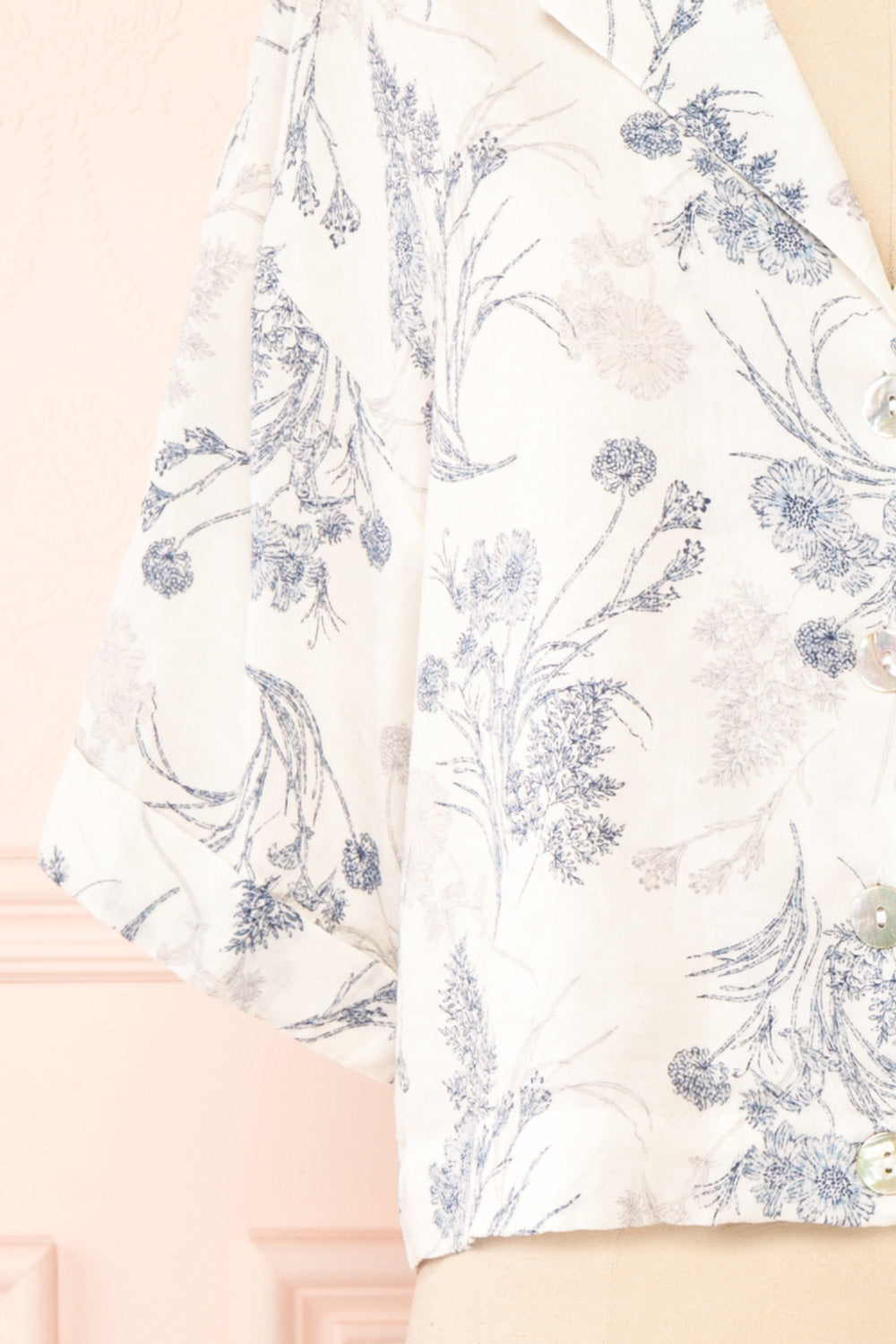 Bredig Blue | Short Sleeve Floral Cropped Blouse