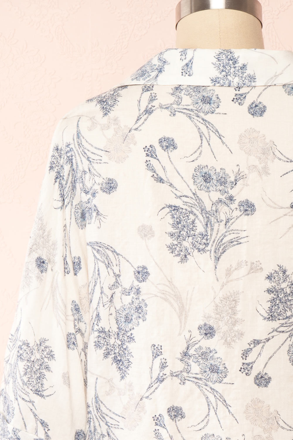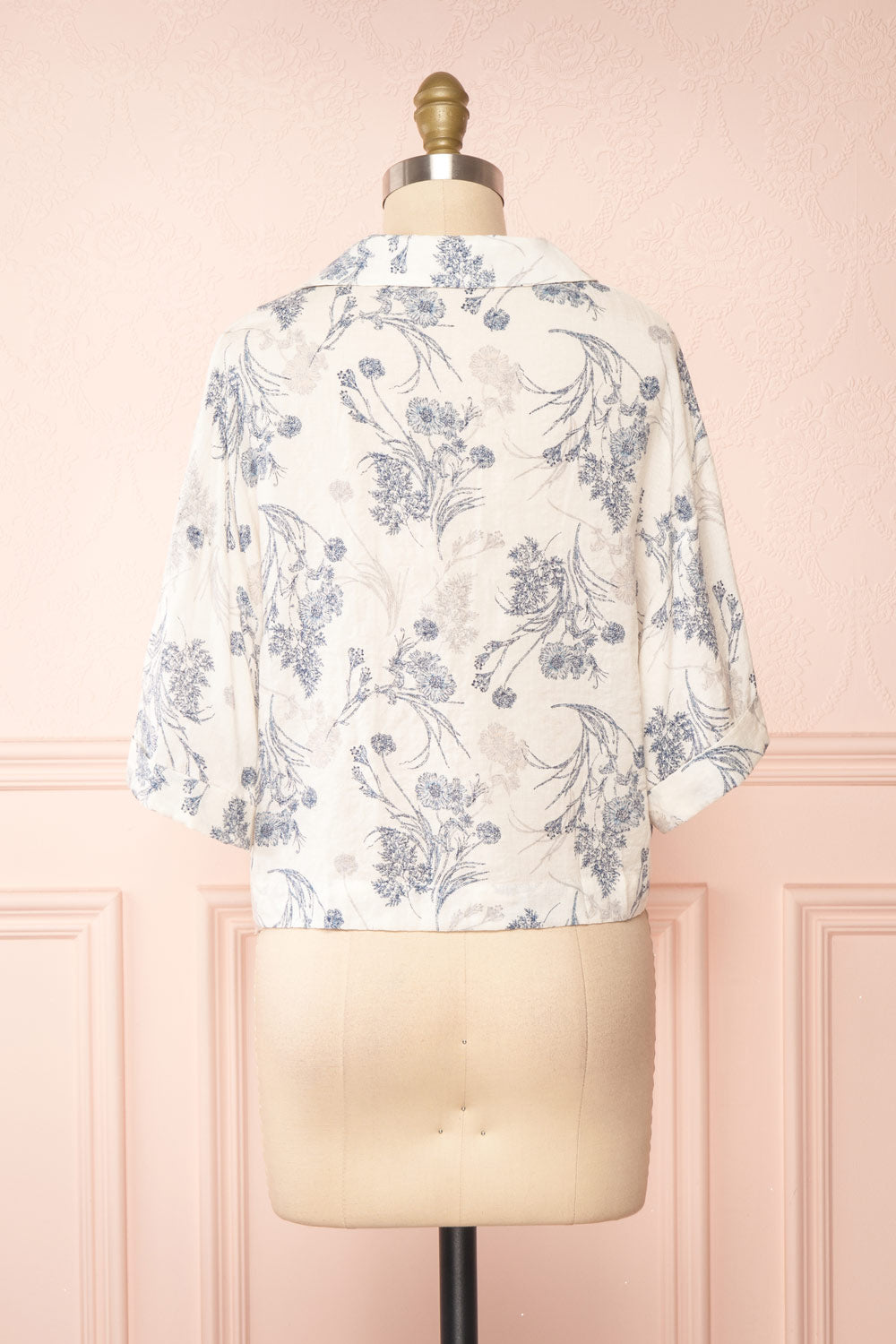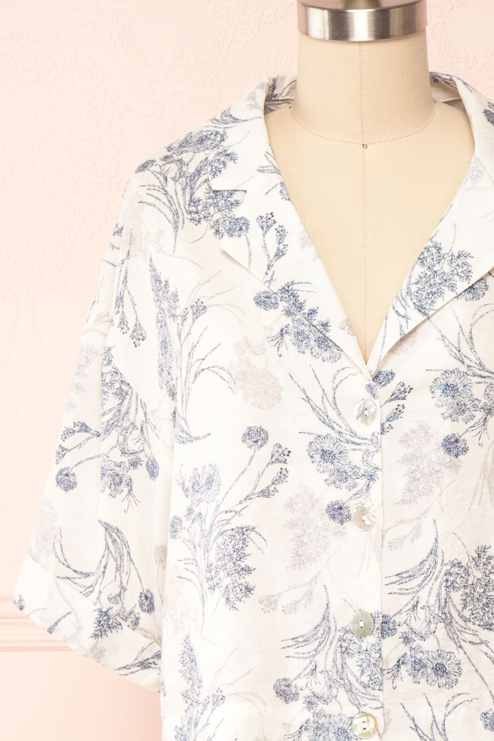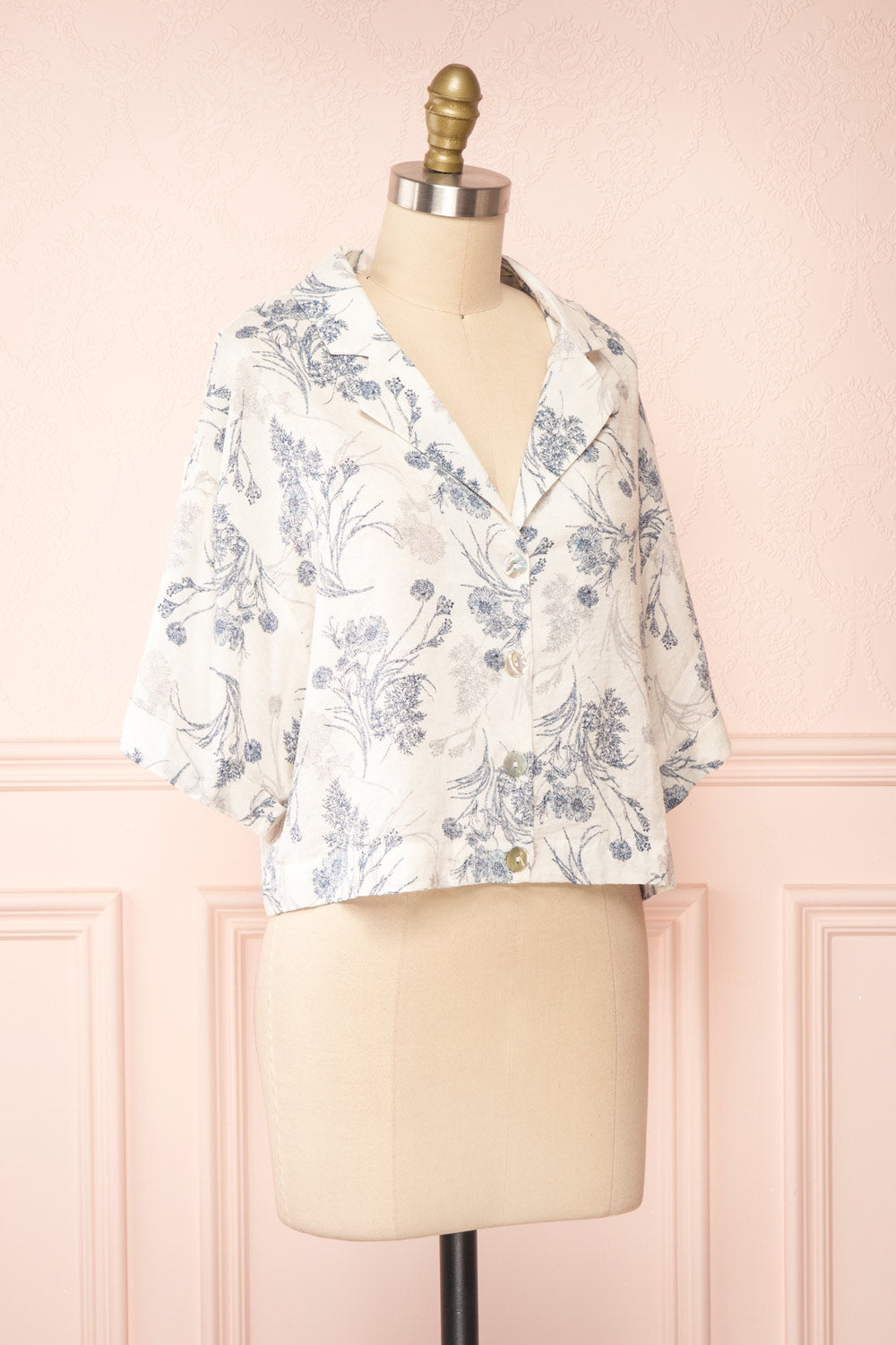 Bredig Blue | Short Sleeve Floral Cropped Blouse