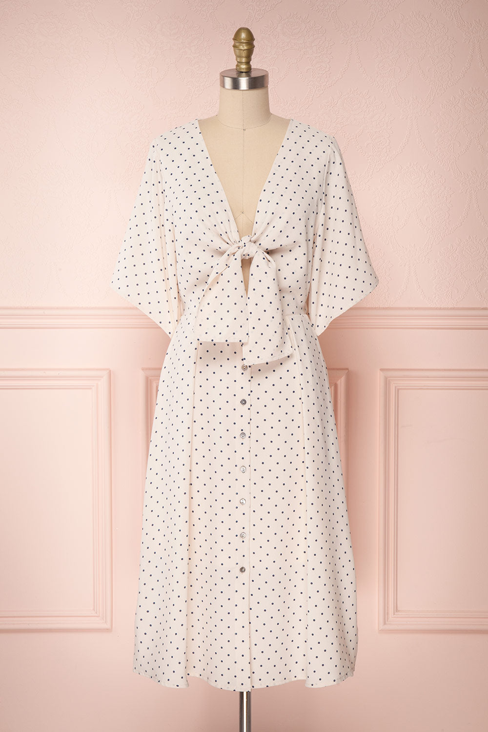 This delightful dress is ideal for sunny weather and warm breezes! The lightweight material and loose fit ensure your comfort, while the ruched elastic at the back of the waist will showcase your silhouette. The knotted neckline and buttons give this piece a charming rustic feel. Side slits offer more freedom of movement; perfect for walking along the beach!