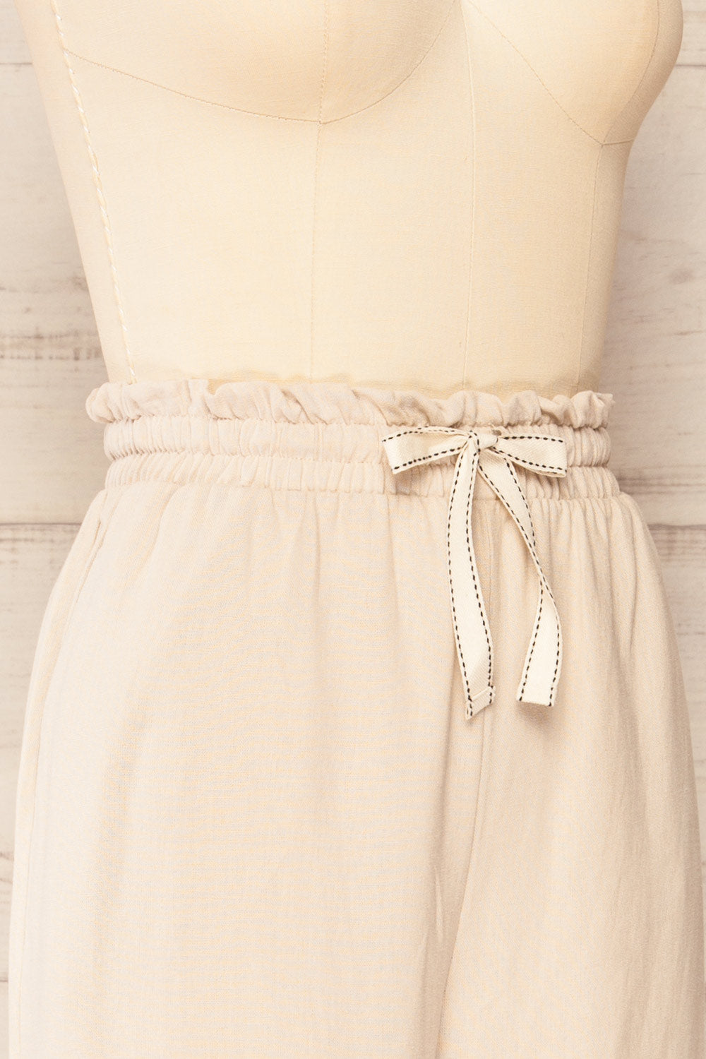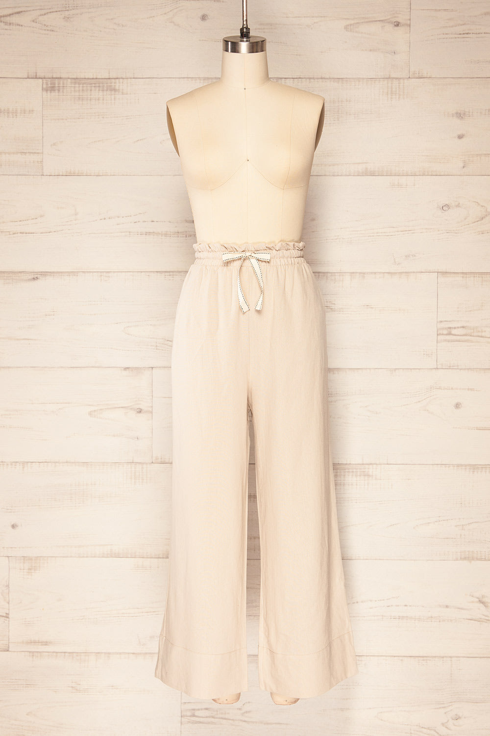 Buseto Beige | Faux-Linen Wide-Leg Pants