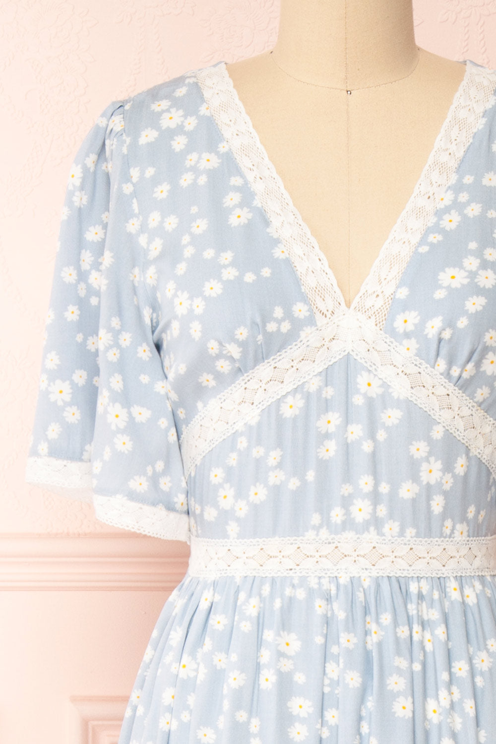Cadice Blue | Floral Short Sleeve Midi Dress