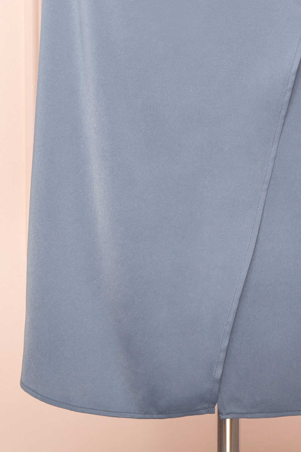 Chloe Blue Grey | Cowl Neck Satin Midi Slip Dress