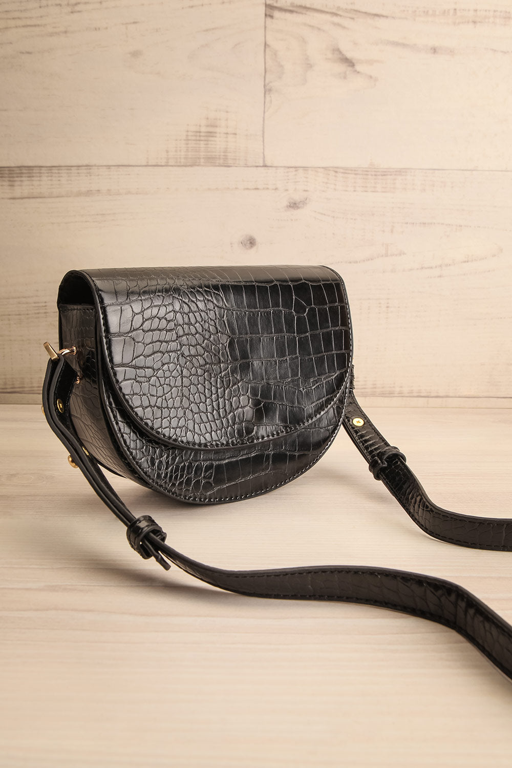 You'll love this faux leather crossbody bag! Unique and original, its half-moon shape and golden accents make it a versatile piece that is fitting for any occasion. Its two pockets will allow you to easily keep your essentials close and organized. Its handy shoulder strap can be easily removed and tucked into the bag so you can turn it into a clutch!