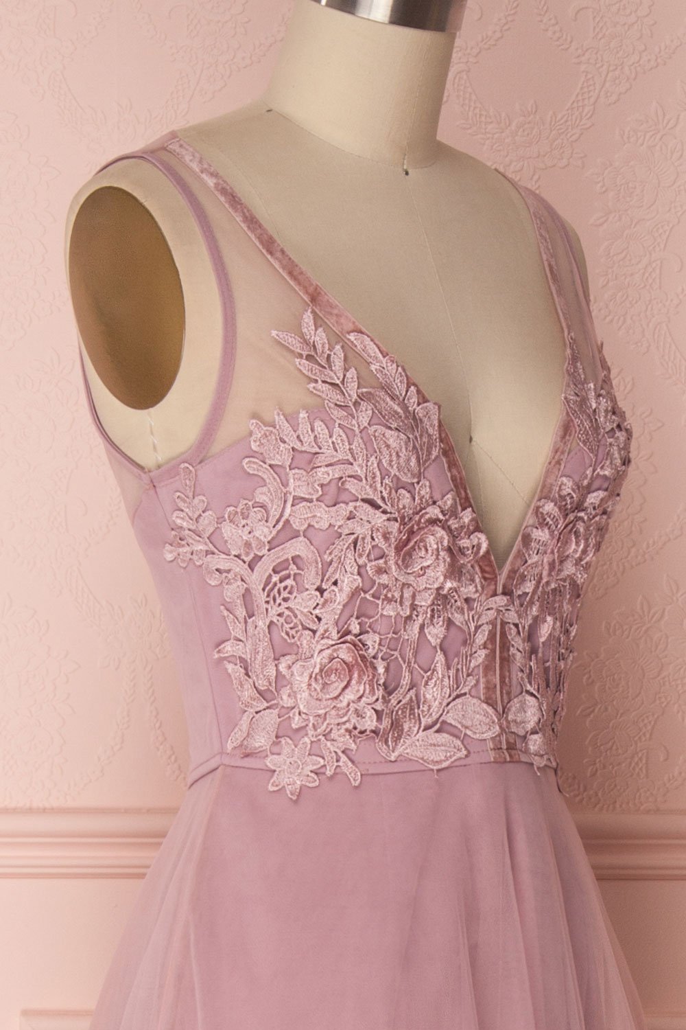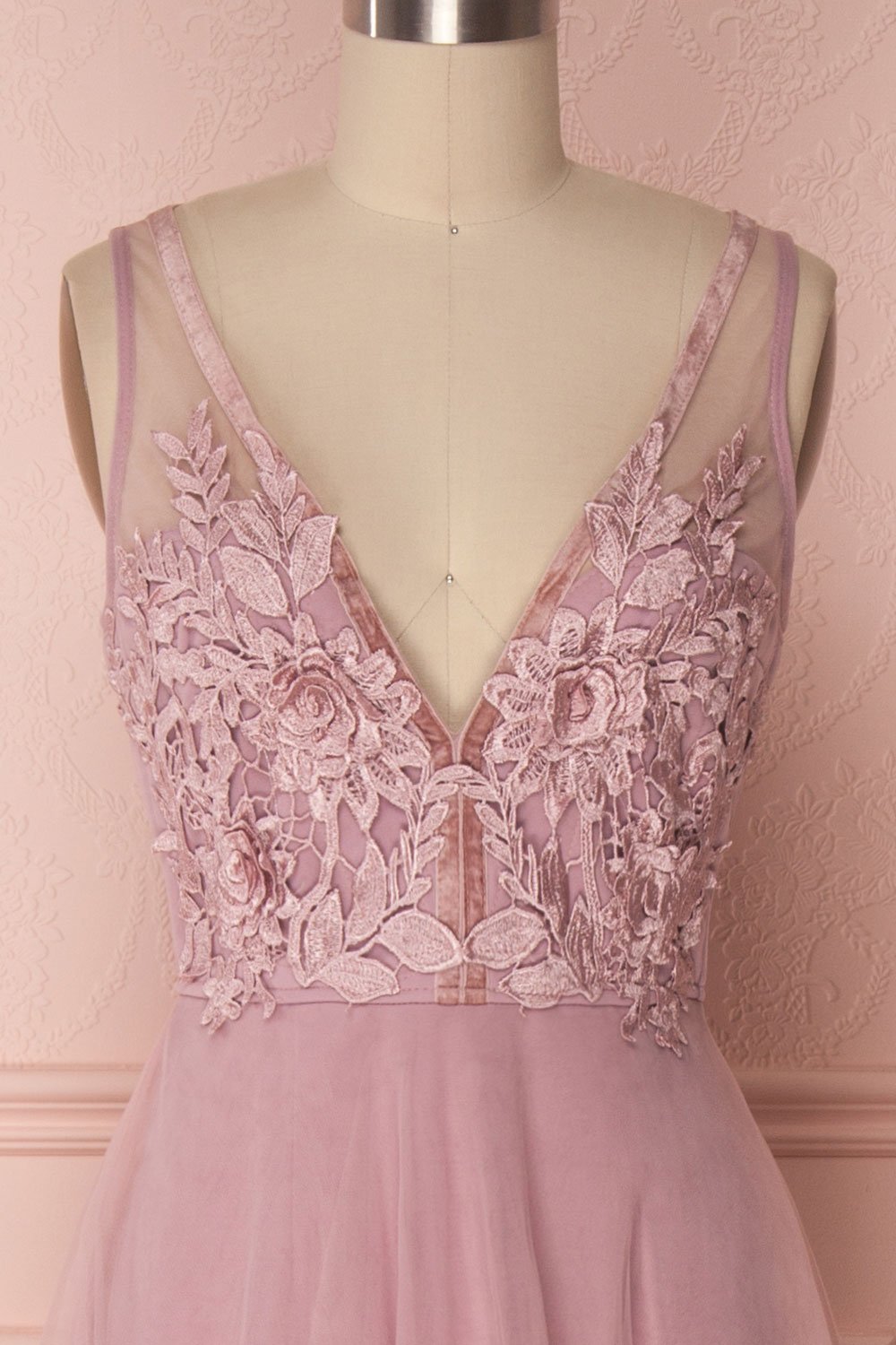 Enchantment immediately sets in when wearing this lace and tulle dress. Its plunging velvet neckline and soft, voluminous tulle crinoline let your thoughts dwell on majestic royal balls. A practical zipper makes it easy to wear. You'll adore its openwork details that decorate the bust!