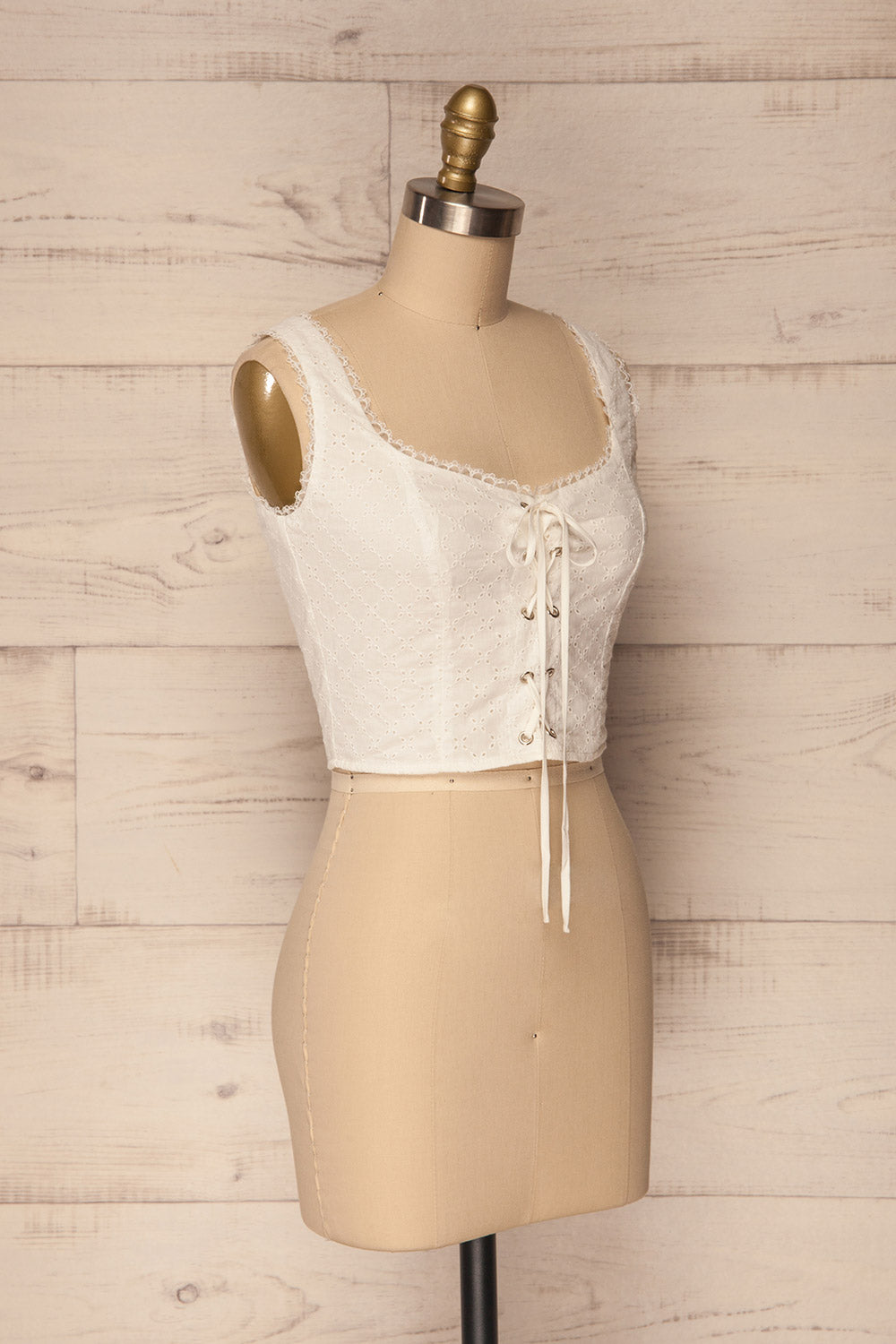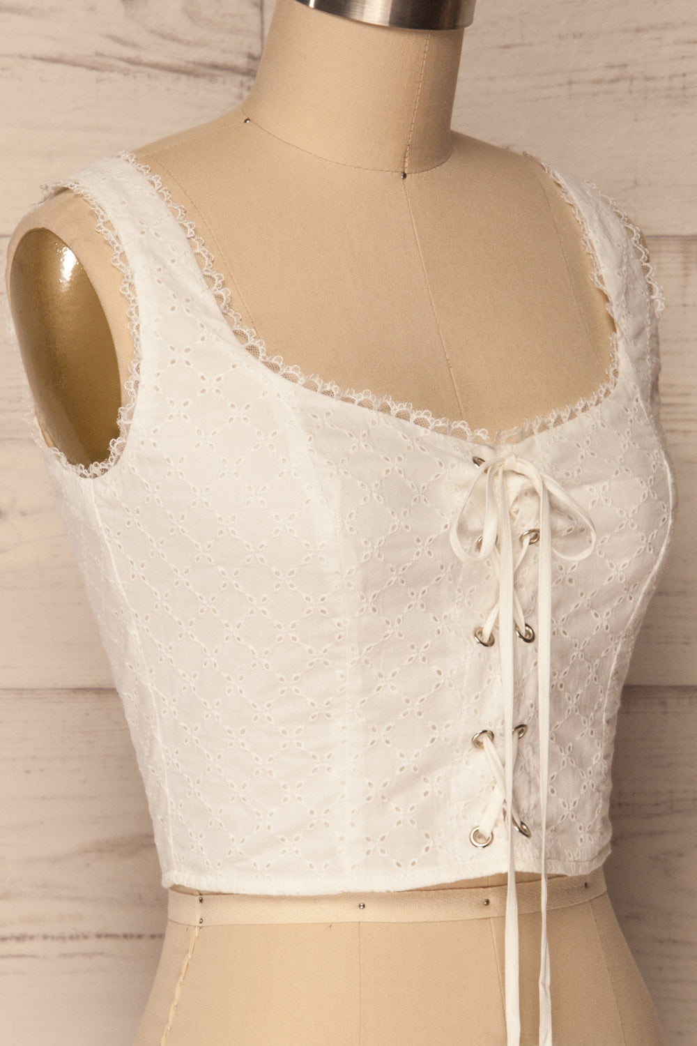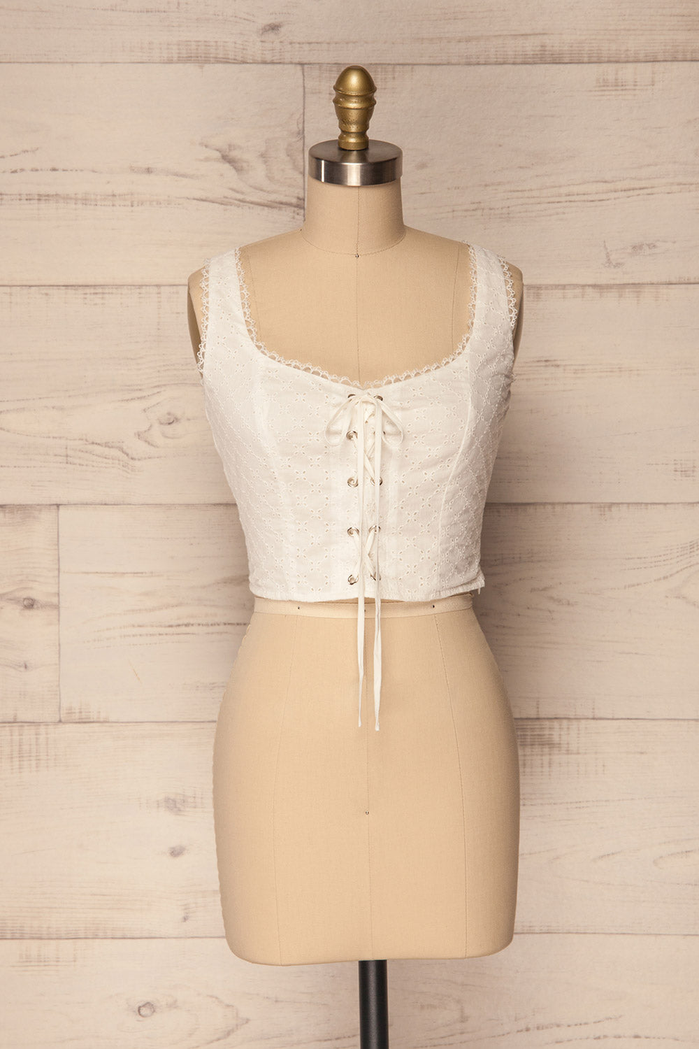 Your summer adventures will begin with this lace crop top! The laced front adds a Victorian touch to this modern piece, while allowing you to adjust its fit.