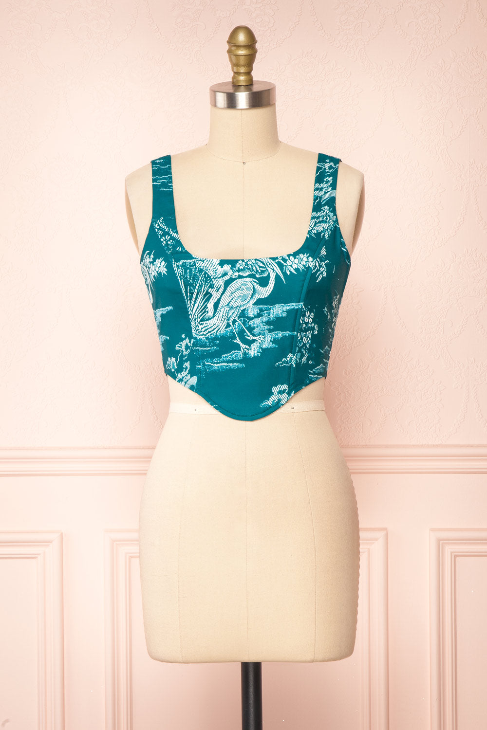 All eyes will be on you when you wear this bold and flattering corset top! The corset has boning that will enhance your curves and keep a structured fit all through out your day. The white ribbon in the back will allow you to put it on easily and adjust to fit to your figure. The colour and pattern will really shine when paired with your favourite high waisted jeans!