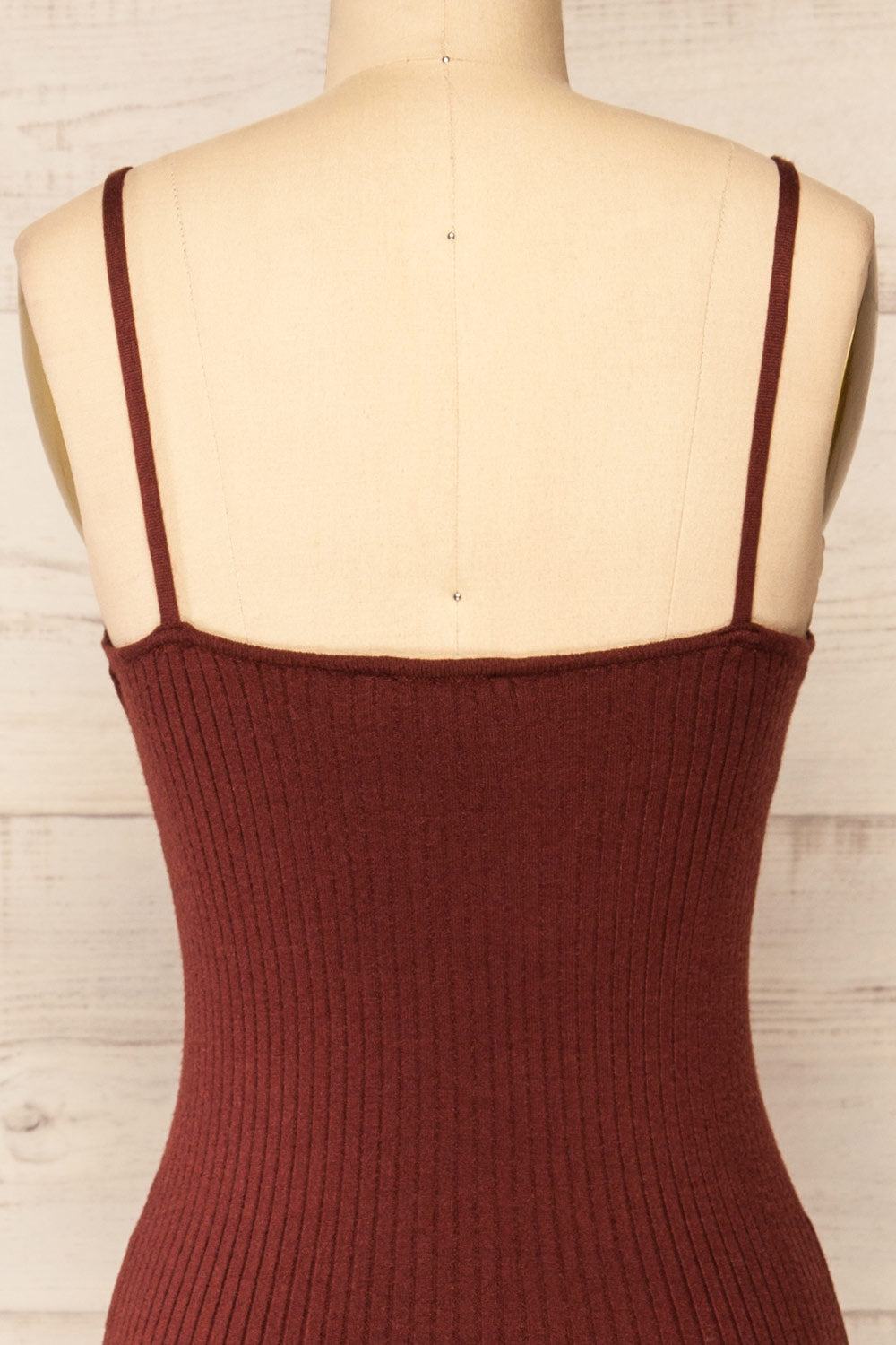 Edwina | Brown Midi Dress with Pleated Skirt and Low-Cut Back