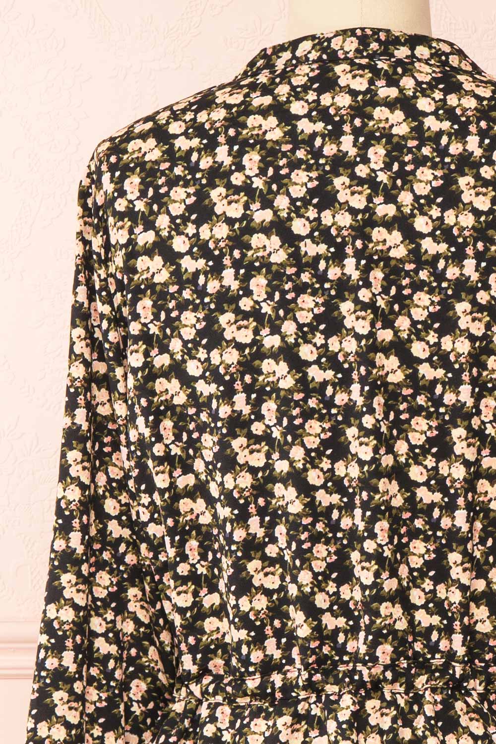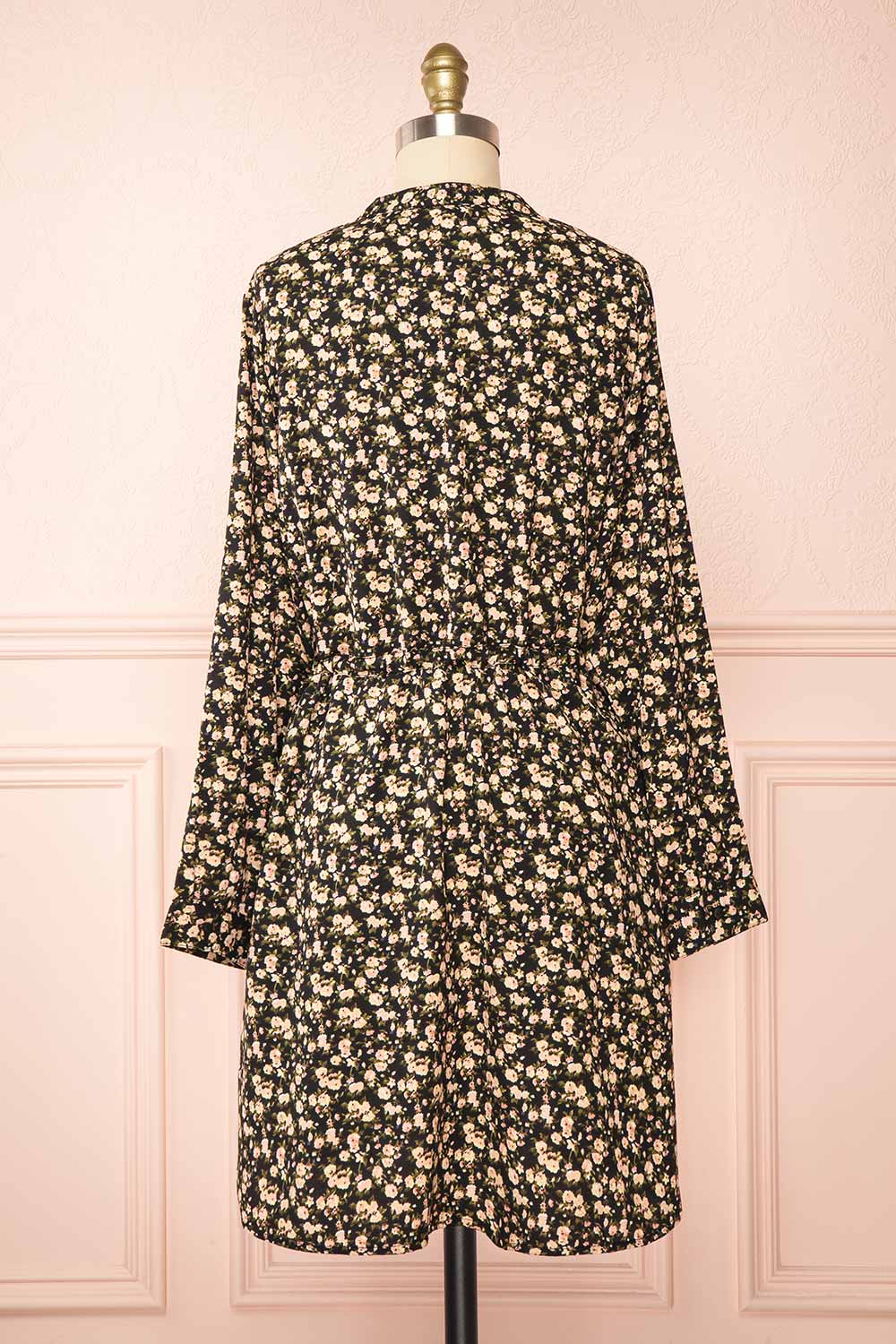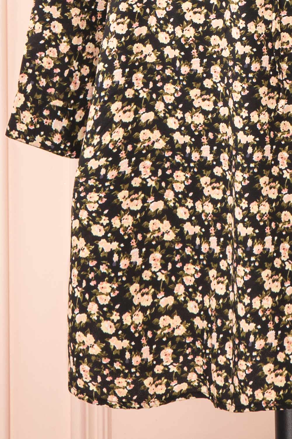 Estefania | Black Floral Short V-Neck Dress