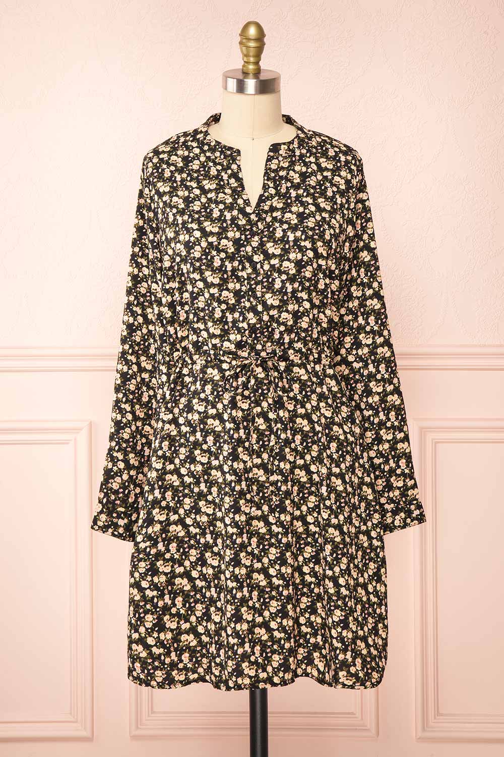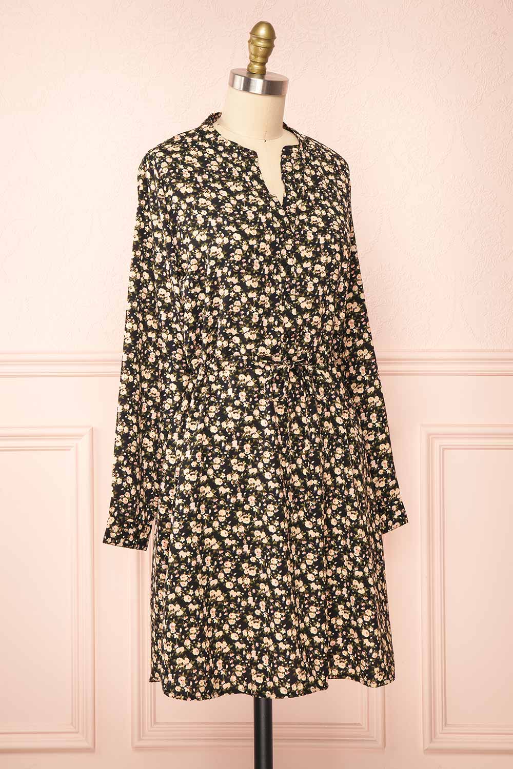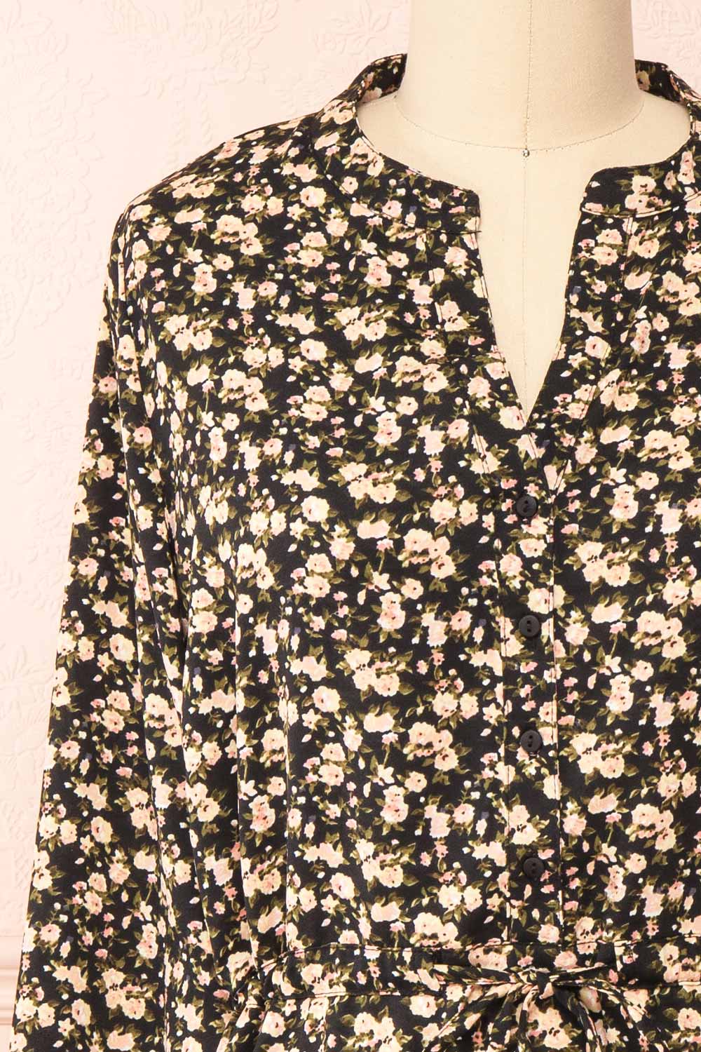 Estefania | Black Floral Short V-Neck Dress