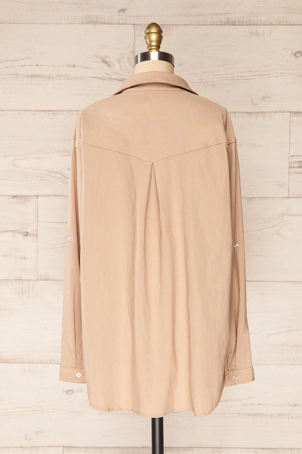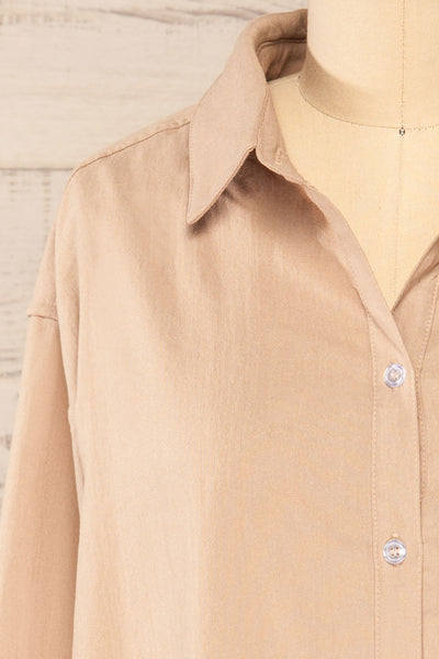 Faro Beige | Oversized Long Sleeve Button-Up Shirt