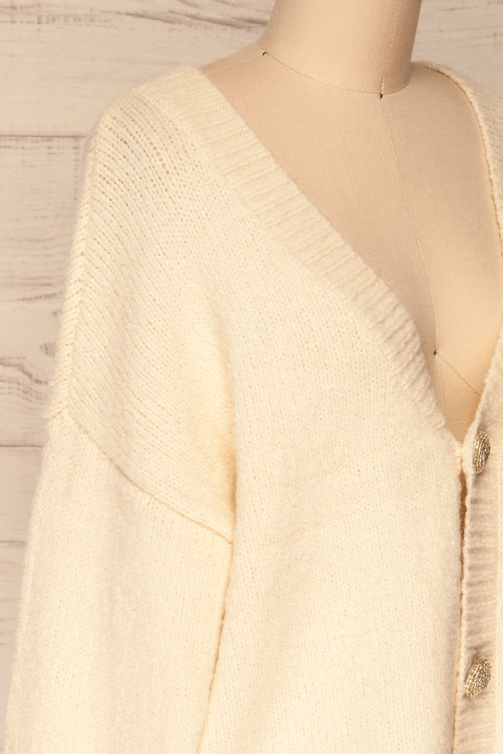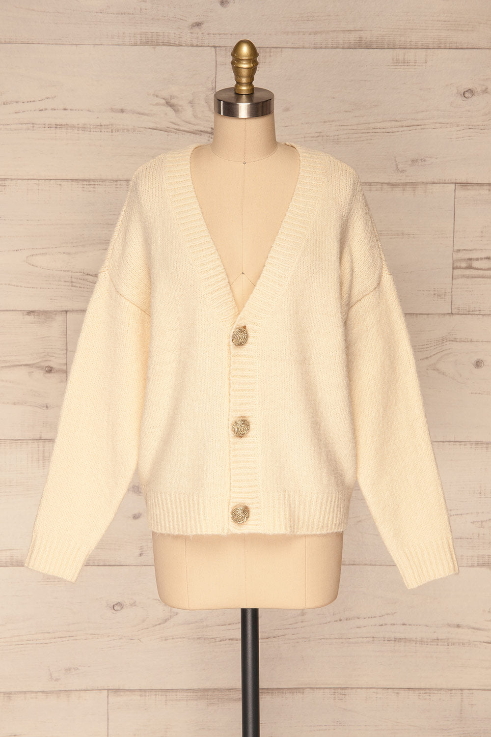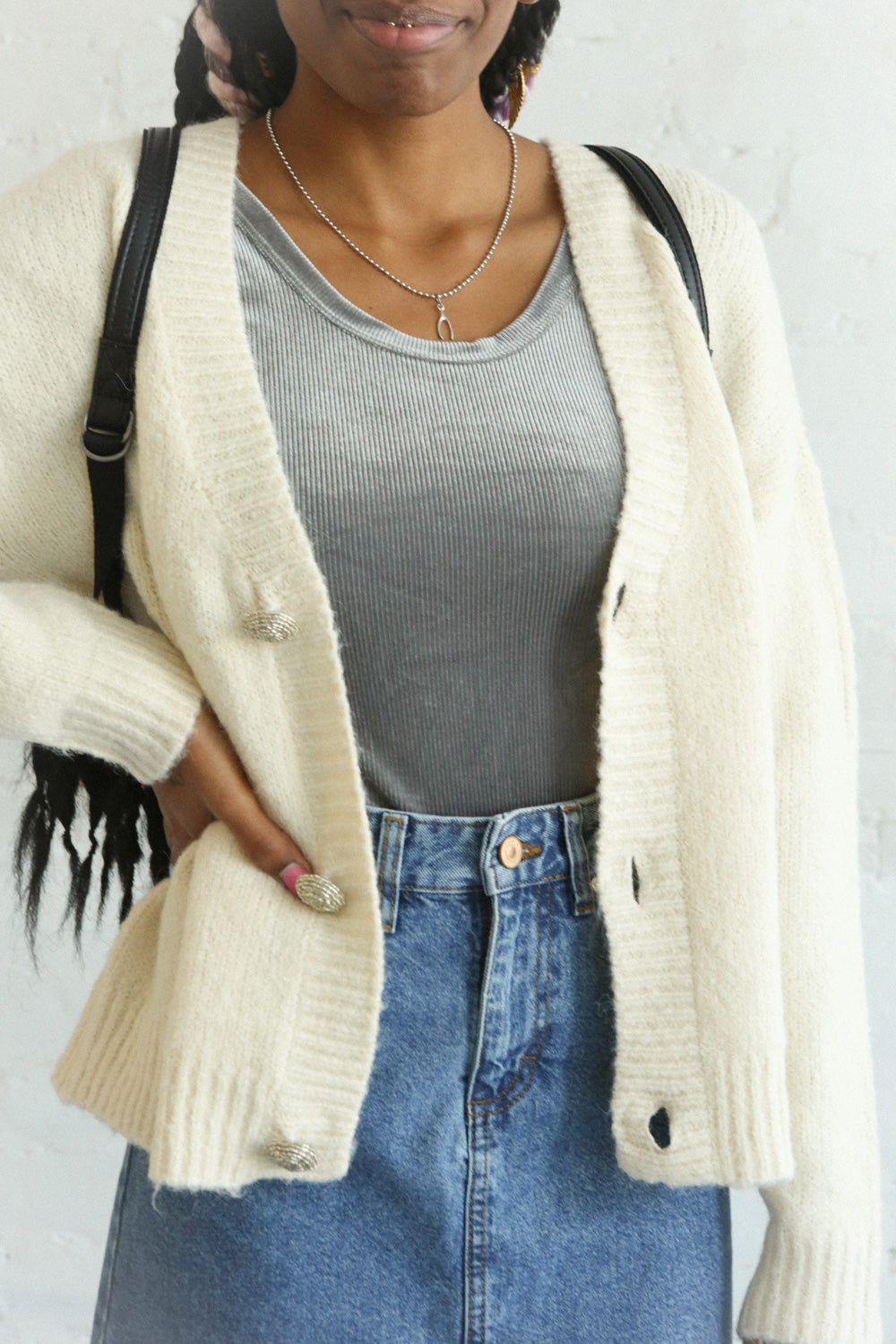 This cardigan will keep you warm with elegance on a daily basis! Its knit is of a divine softness, and the cut of it is perfect for your layered outfits. The buttons down the front will also be practical.