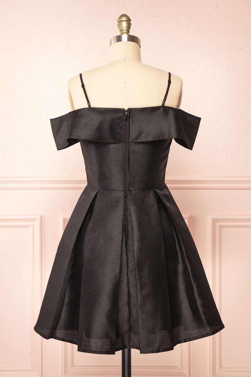 You'll feel glamorous in this elegant short dress! Its off-the-shoulder sleeves will unveil your skin delicately while its fabric falls beautifully and perfectly maintains the dress' shape. You'll love its A-line pleated skirt that will add volume to your look as well as the romantic feel of its straight neckline accompanied by thin adjustable straps. You will surely appreciate the discreet side pockets. Wear it with your favorite high heels to be ready for any occasion!