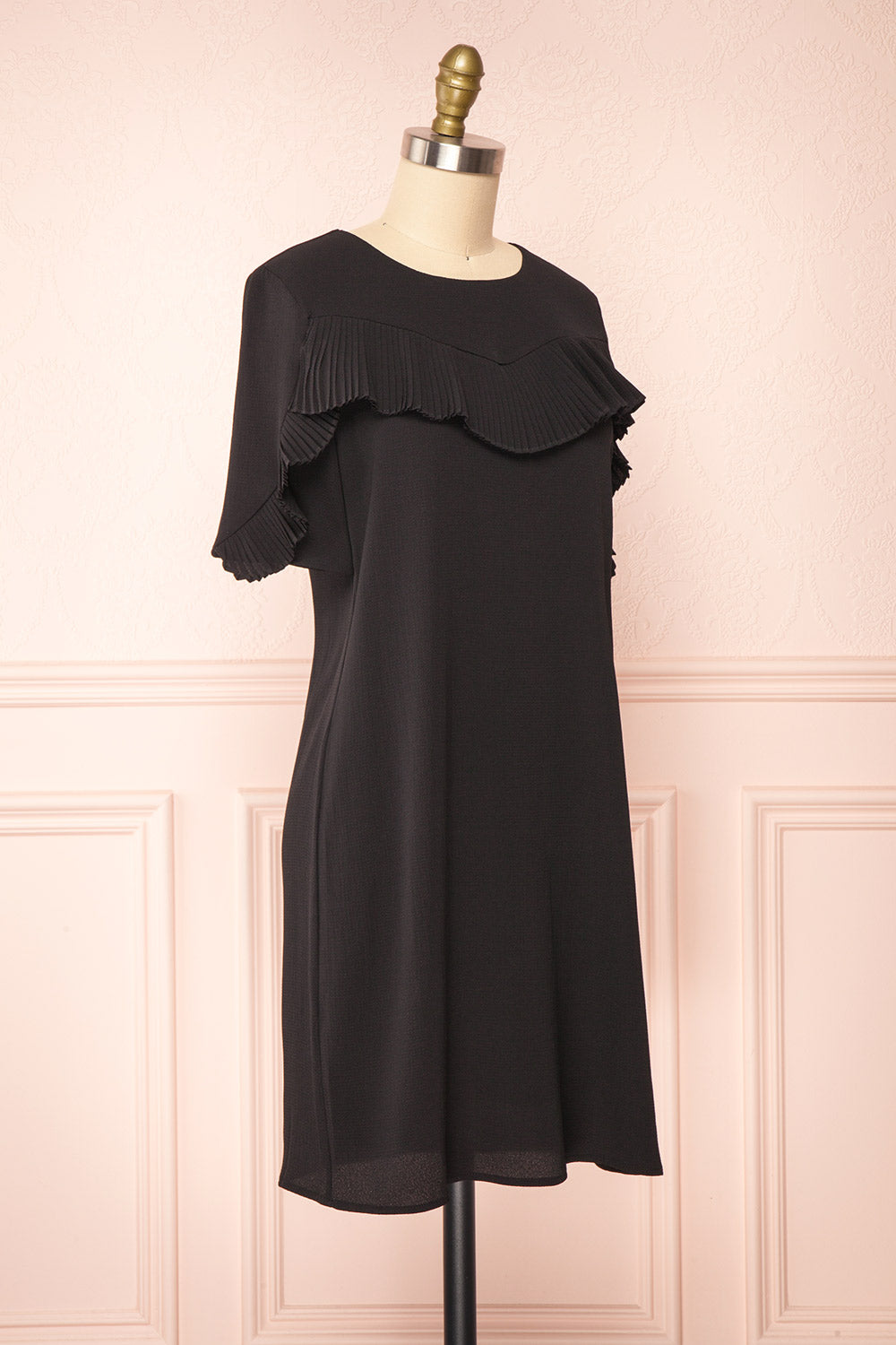 Ganymedes | Black Pleated Frills Short Dress
