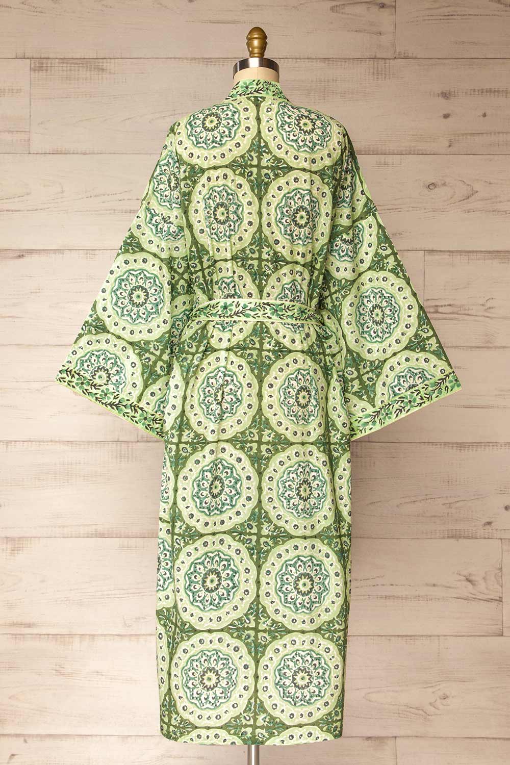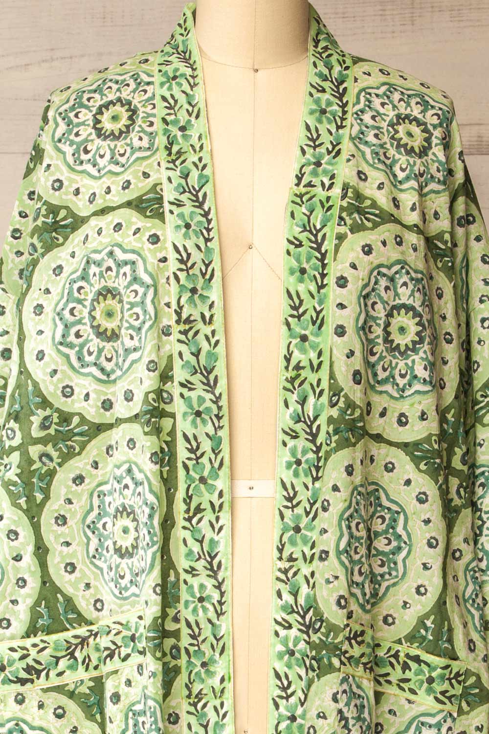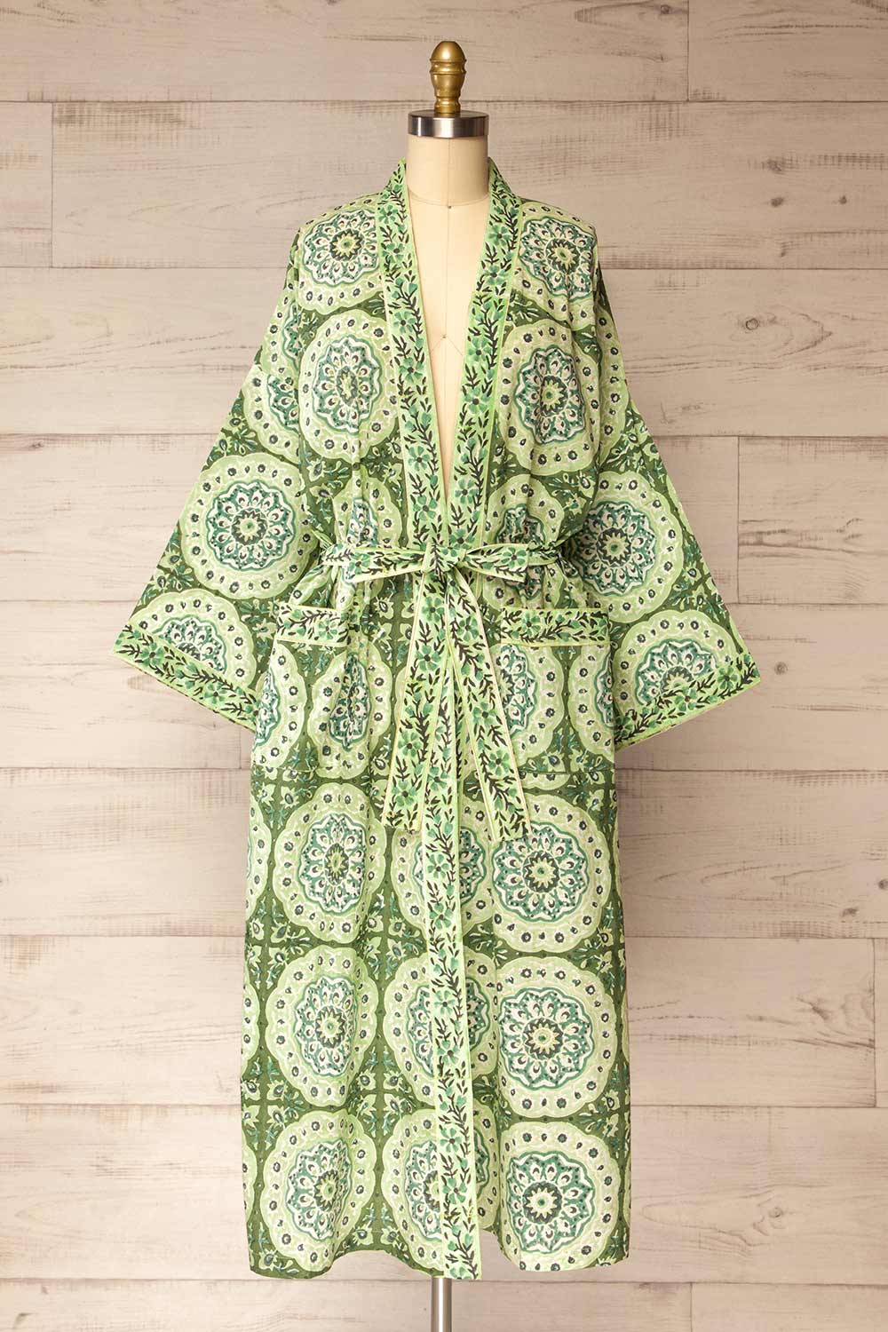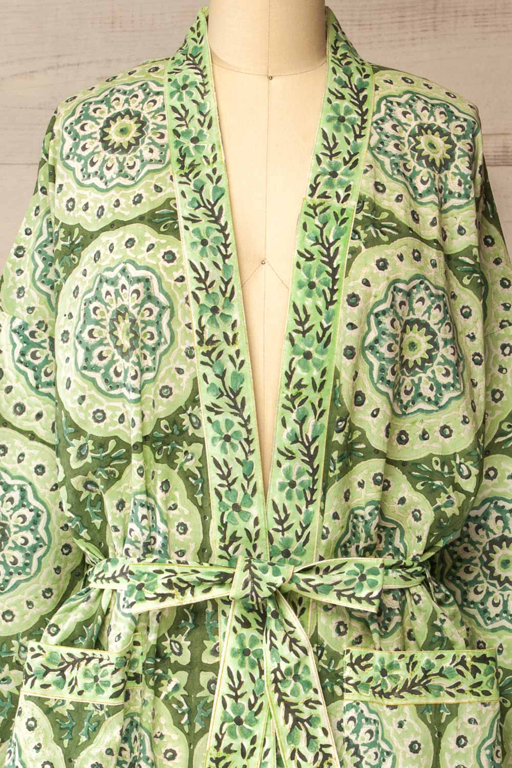 Gokyo | Green Paisley Patterned Kimono with Belt and Pockets