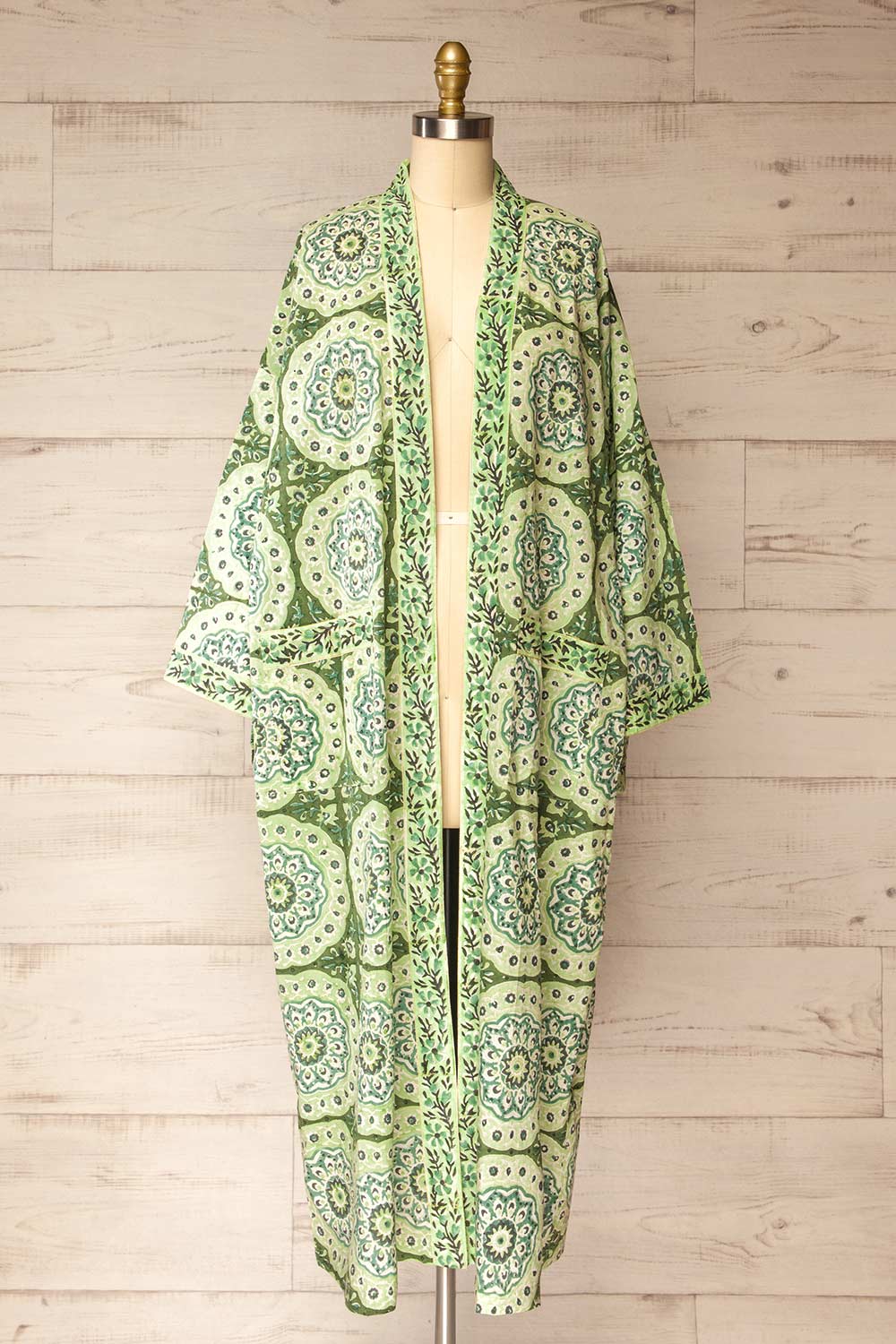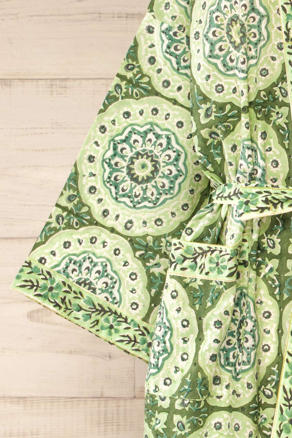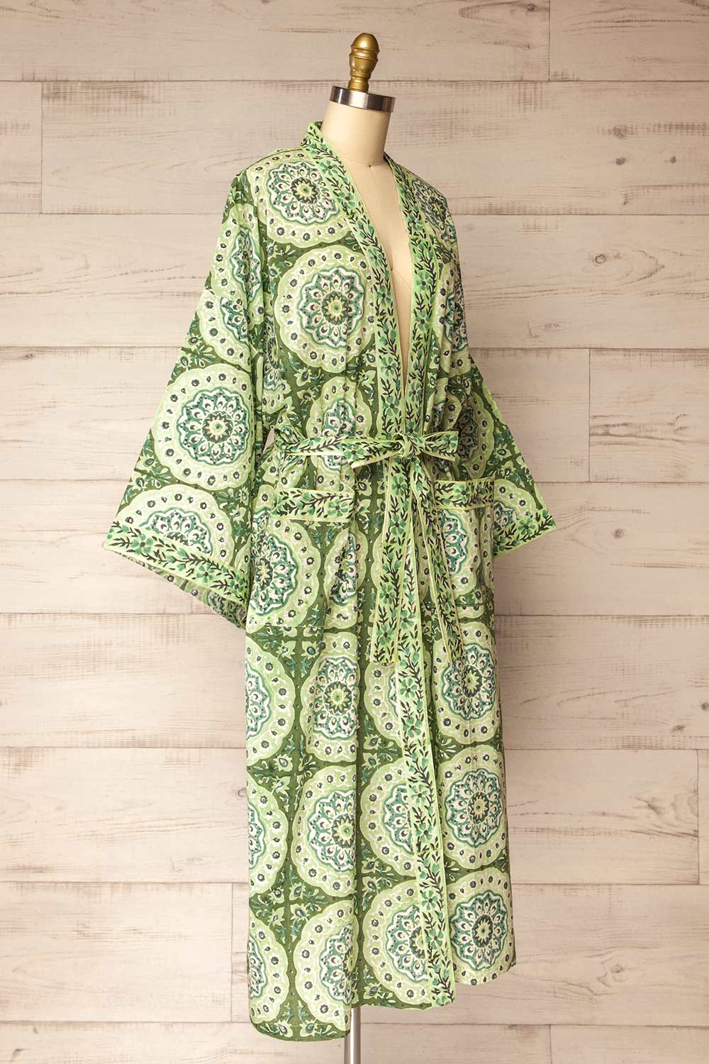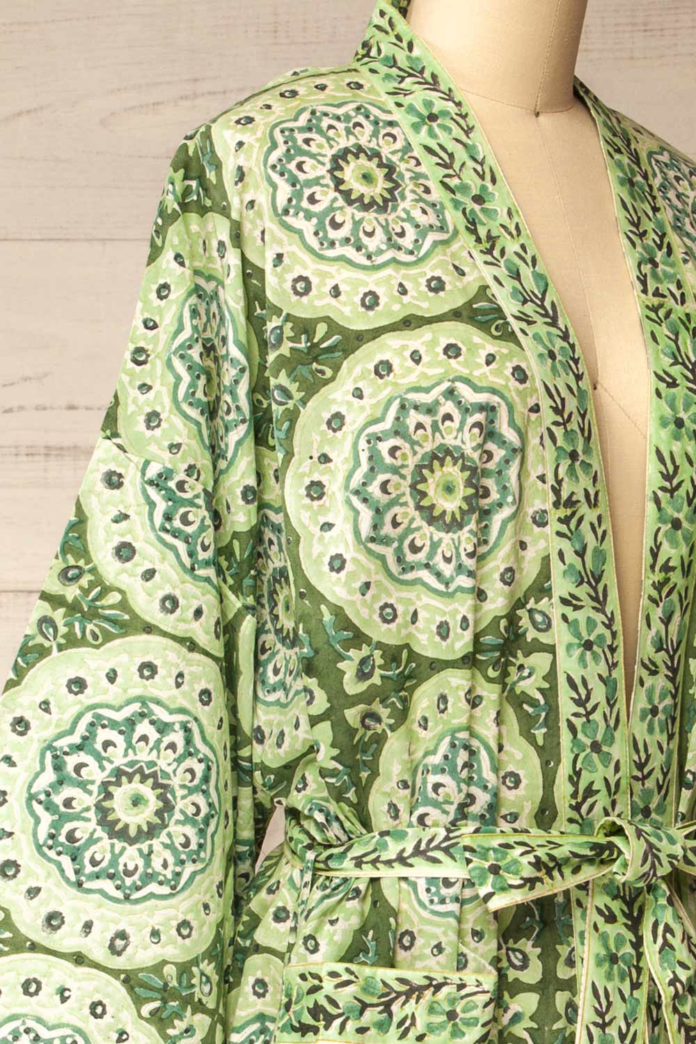 Gokyo | Green Paisley Patterned Kimono with Belt and Pockets