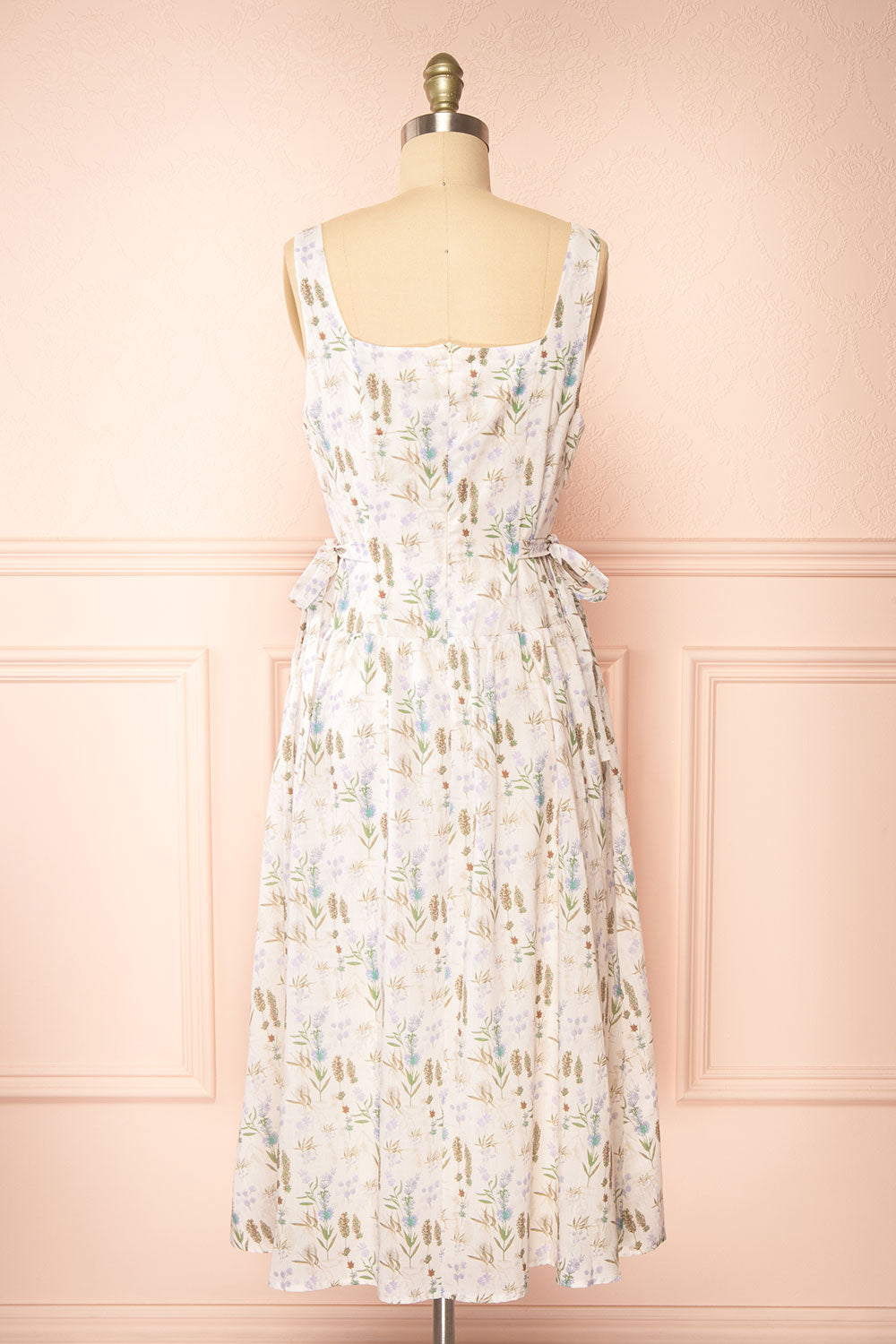 Step into summer with this charming midi floral dress! The adjustable side bows allow you to tie up your waist just so, giving you the perfect fit. With its sweet field-printed pattern and decorative buttons at the top, this dress is the epitome of cottagecore charm - just imagine twirling through a sun-drenched garden in it!
