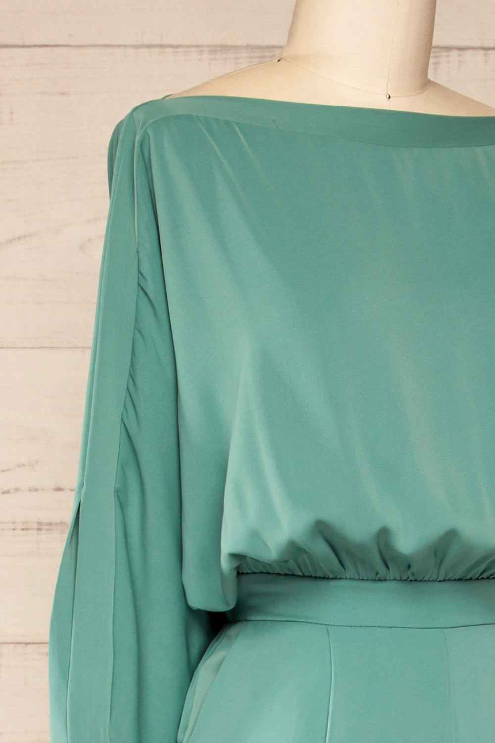 Hanrine Green | Boat Neckline Jumpsuit w/ Pockets