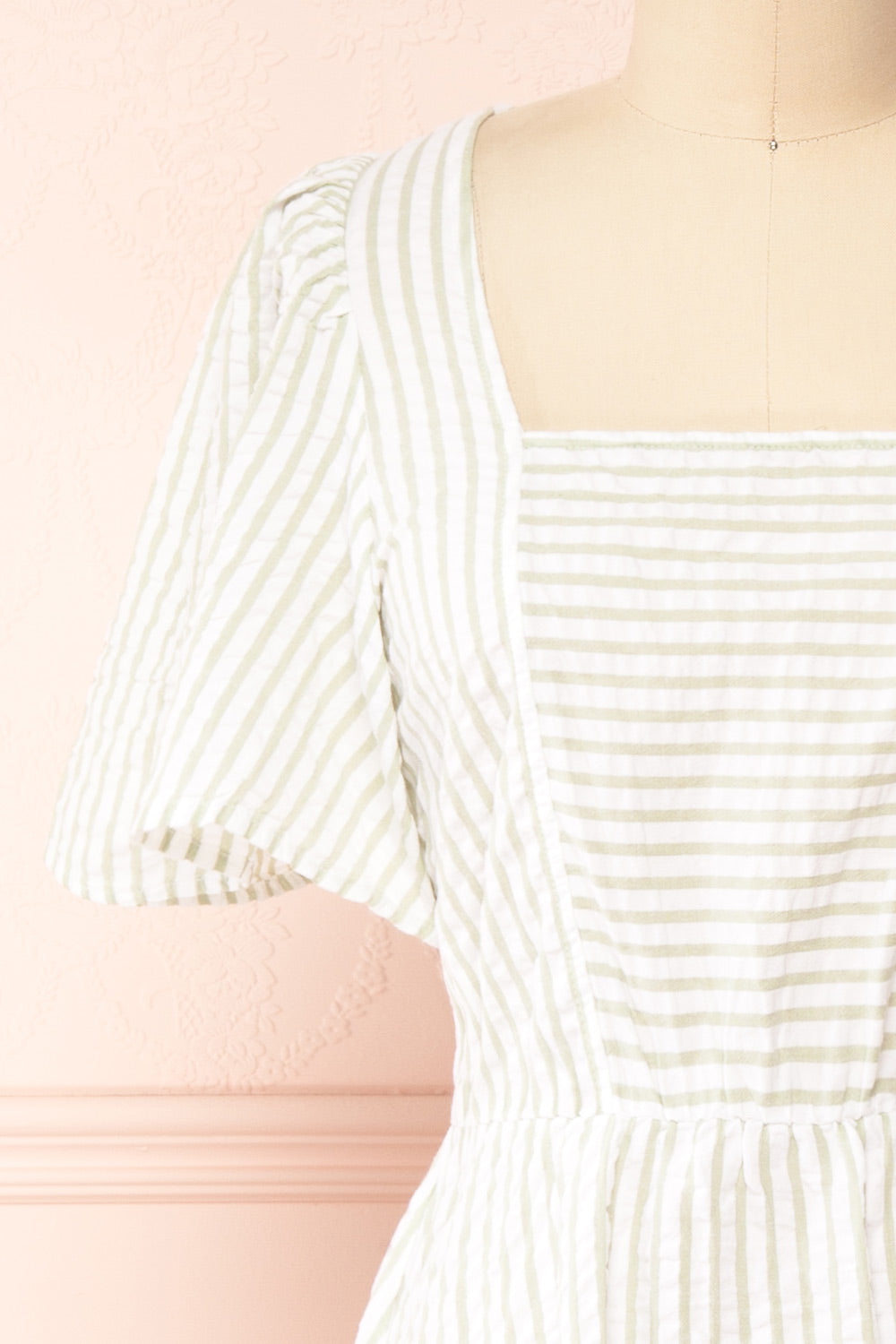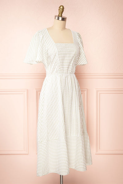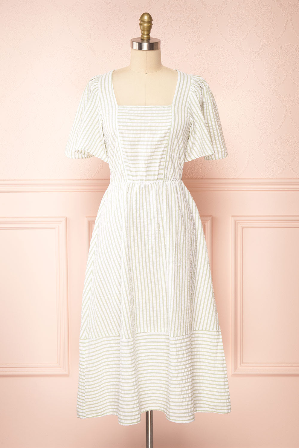 Heidi Sage | Striped Midi Dress w/ Square Neckline