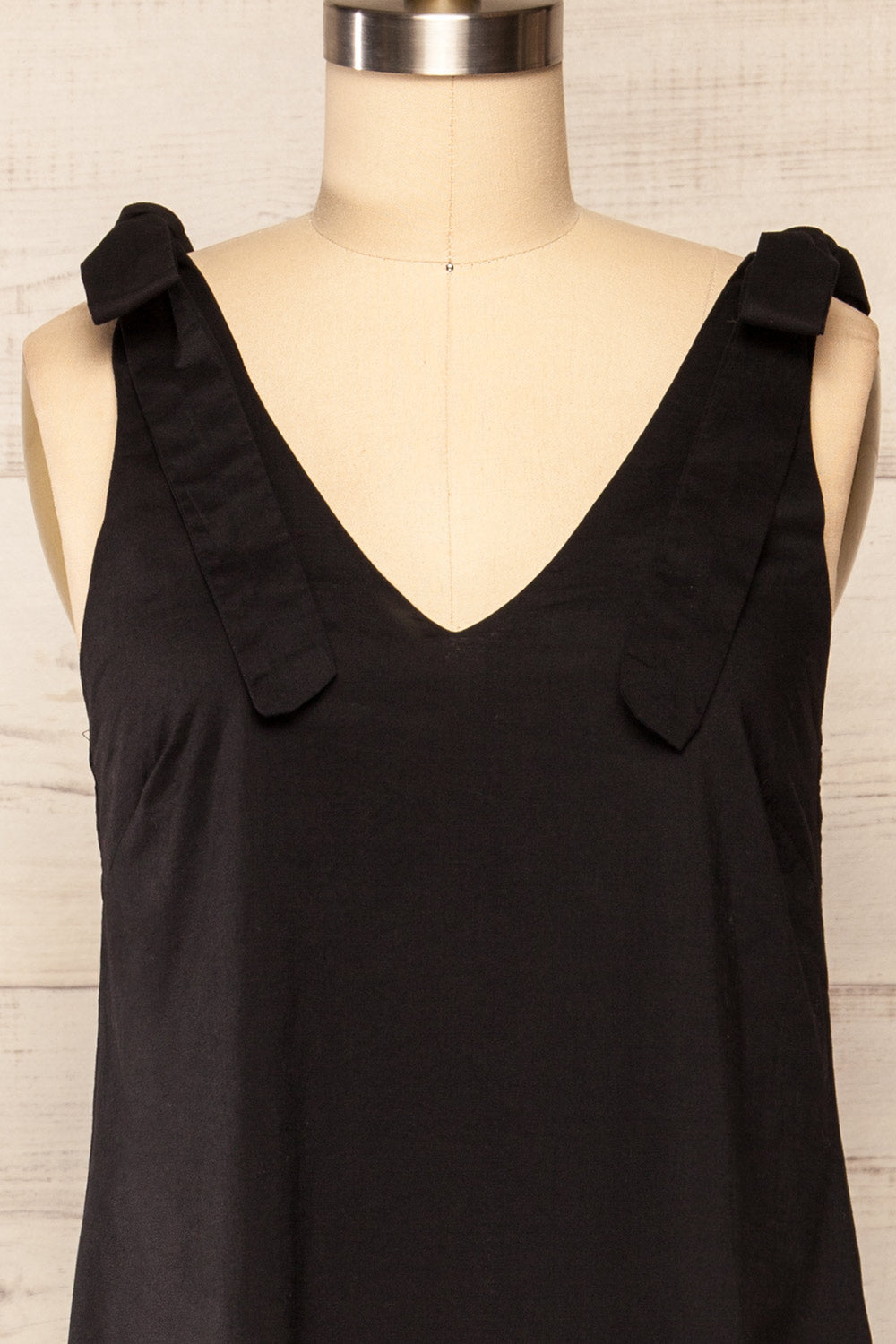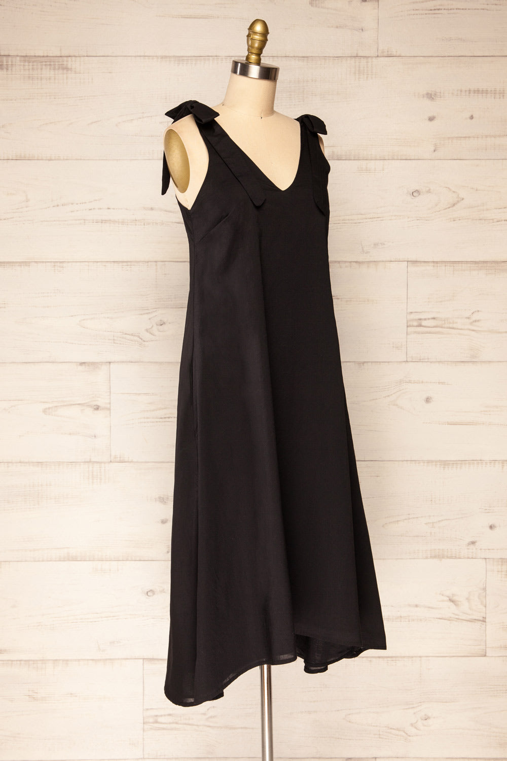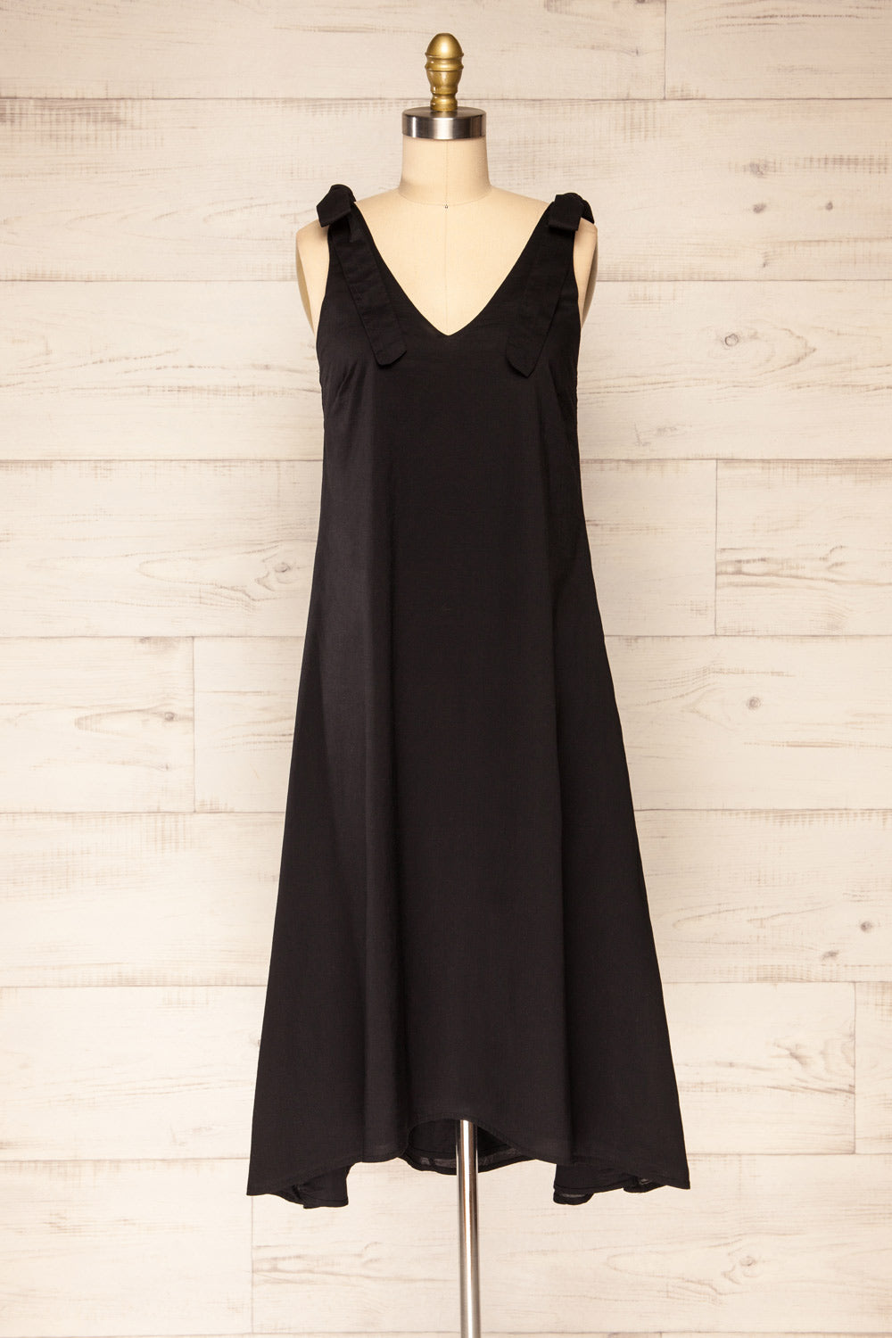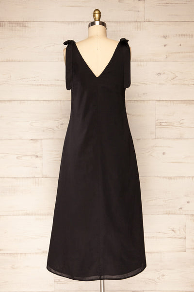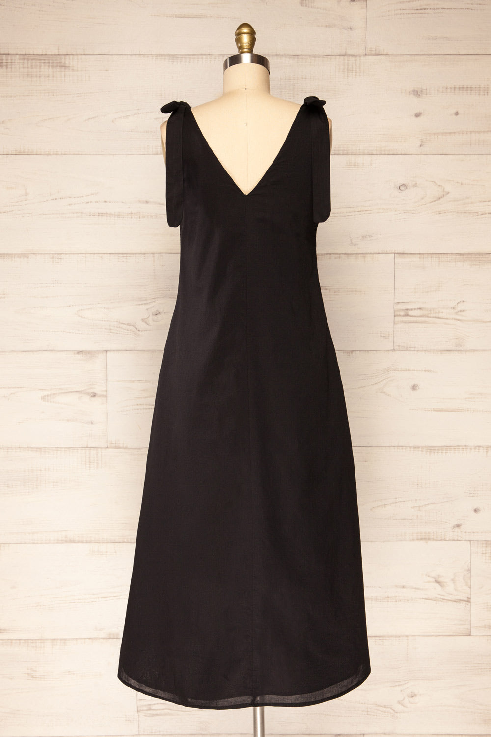 Irig Black | V-Neck Knotted Straps Midi Dress