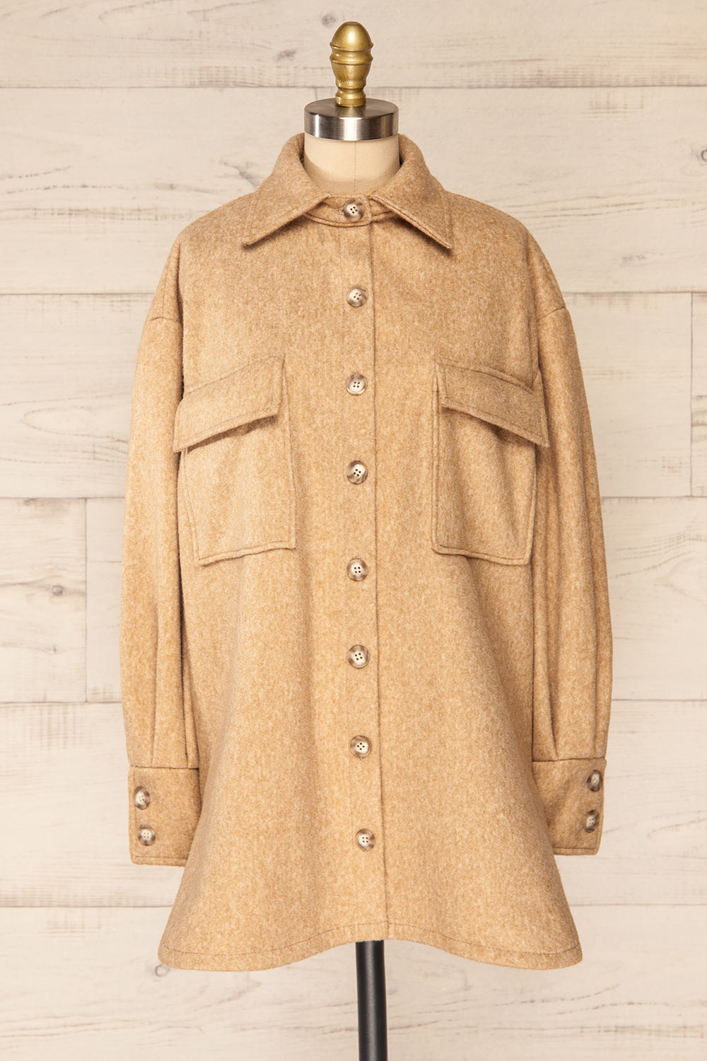 Keep up with the latest fall trends with this buttoned shacket made in Montreal by Dailystory! You will stay warm and cozy thanks to its oversized fit that will allow you to layer up underneath. Its front pockets are the perfect size to fit all your small essentials.