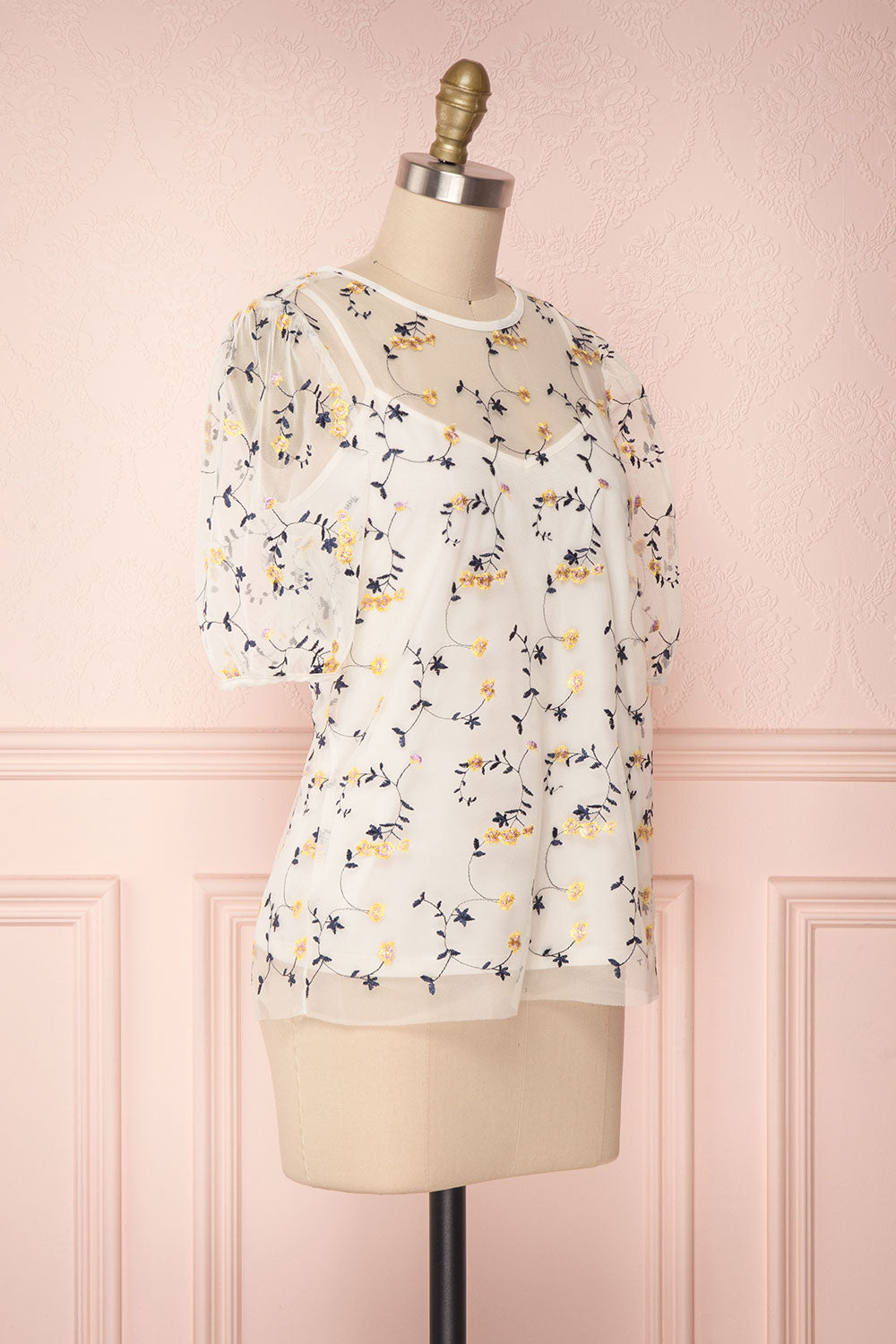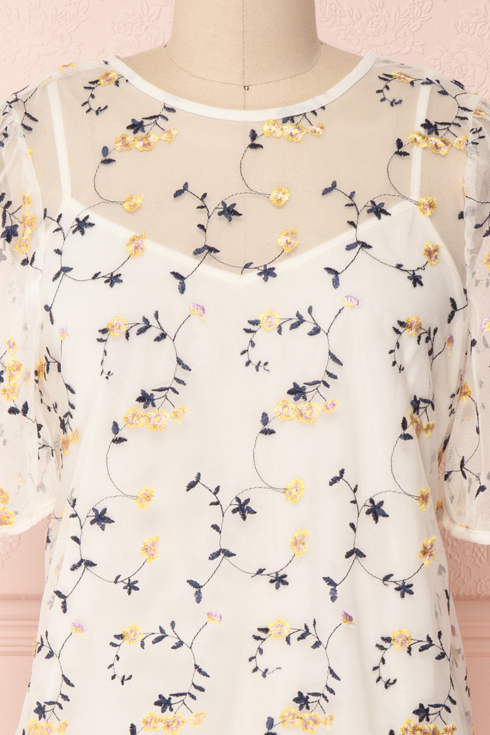 Decorate your sunny days with a springtime romance thanks to this charming top! The delicately embroidered mesh will reveal your skin and features a closure at the nape of the neck, while the camisole lining will comfortably cover you.