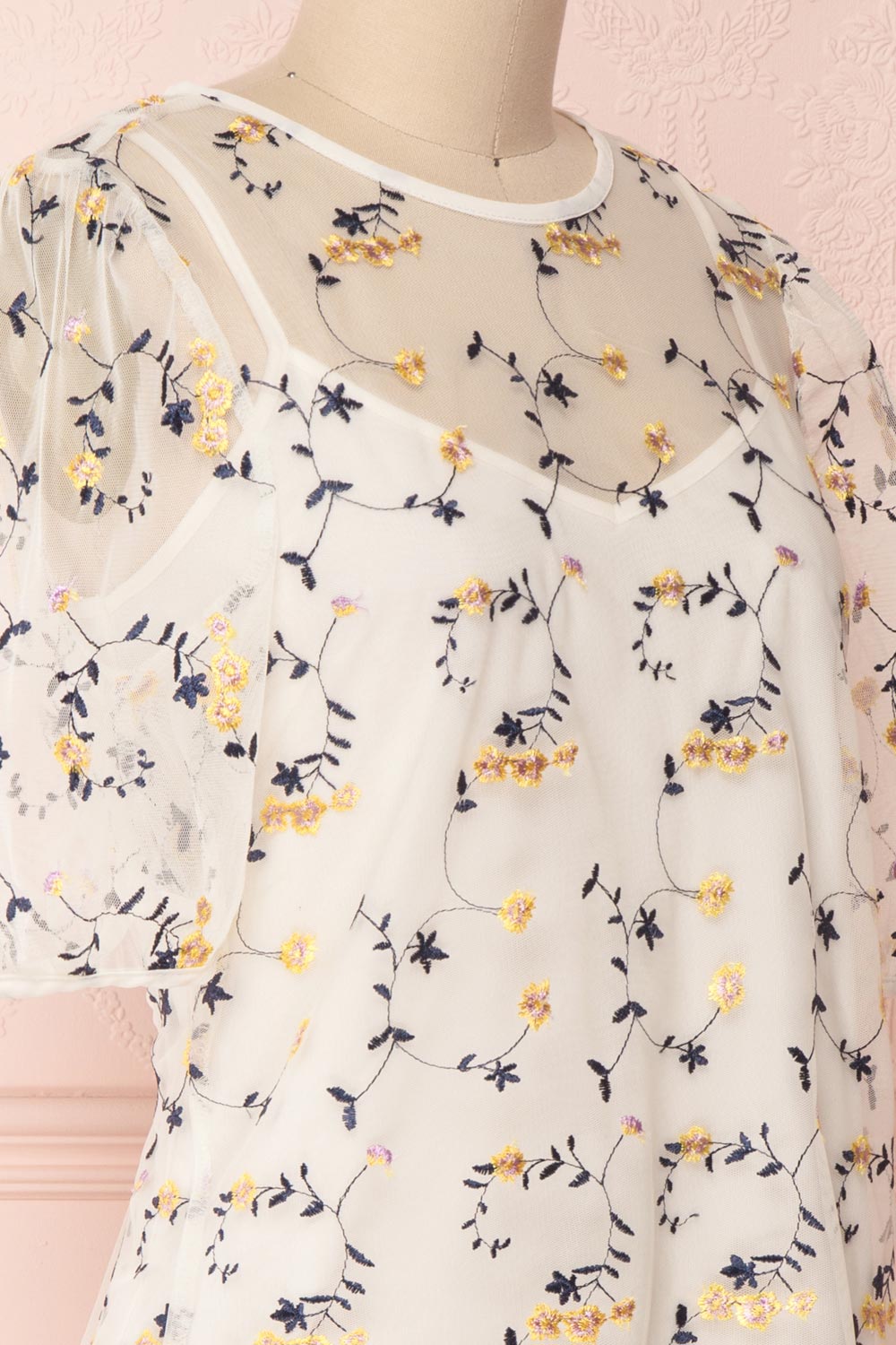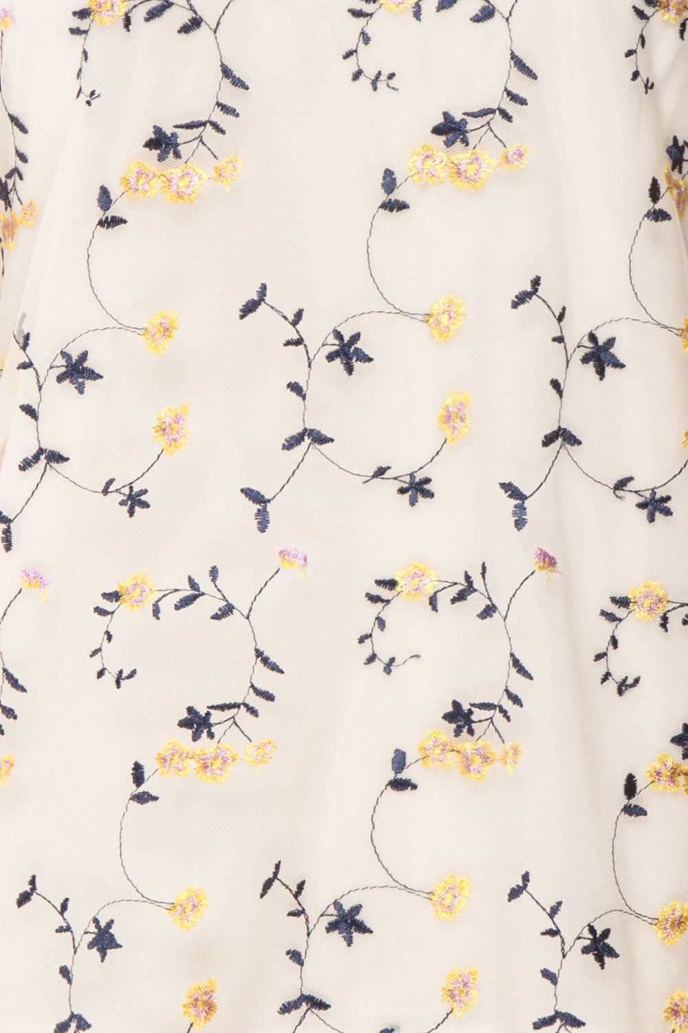 Texture : Filet brodé, doublure extensible | Embroidered mesh, stretchable lining