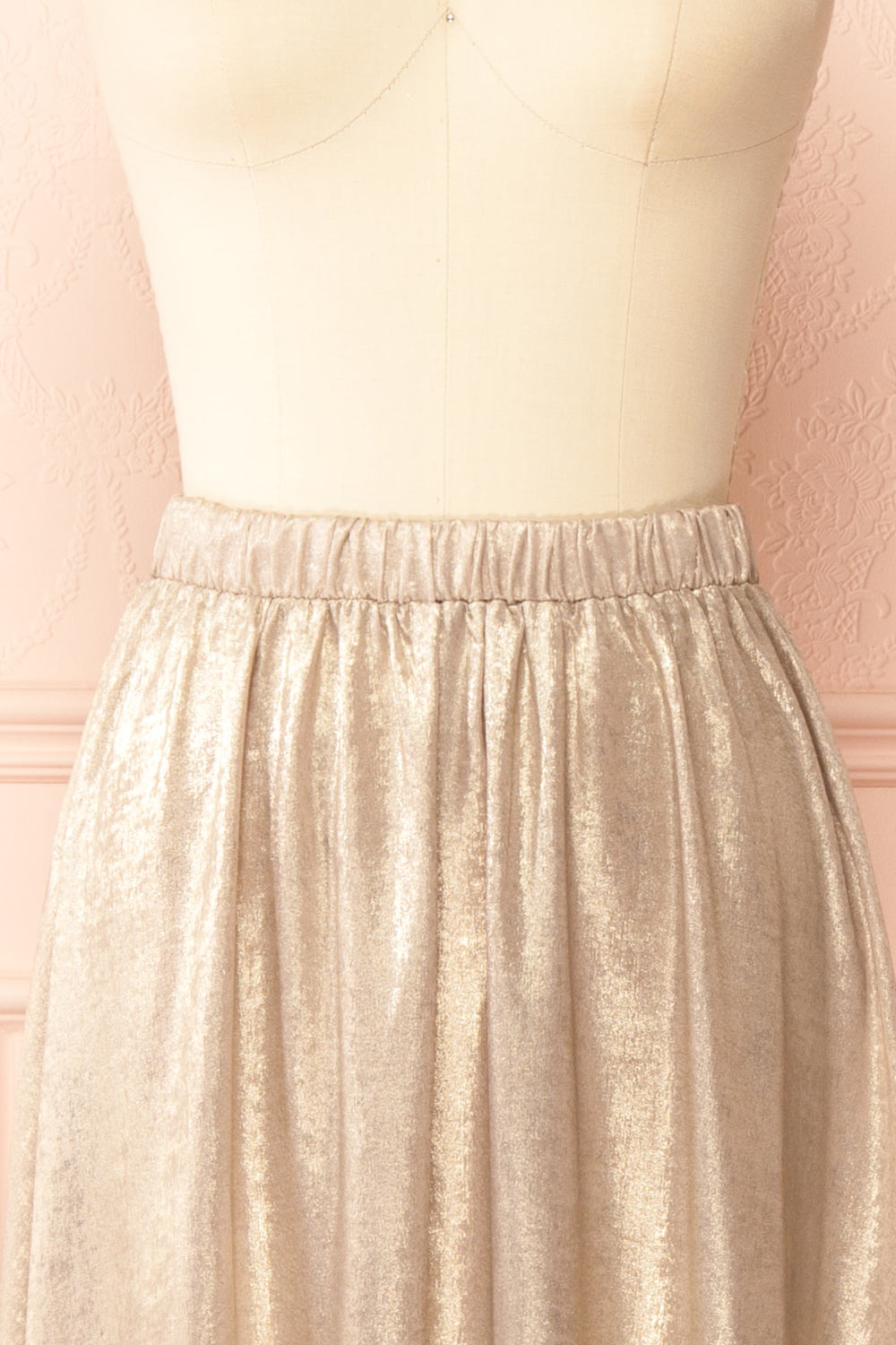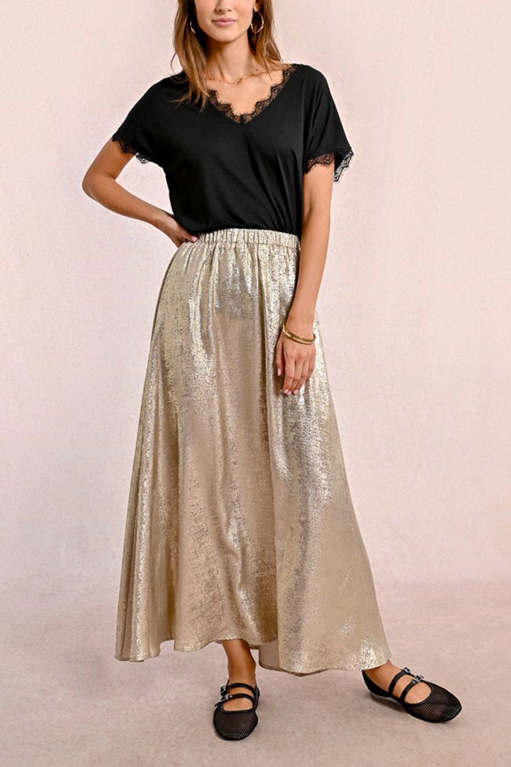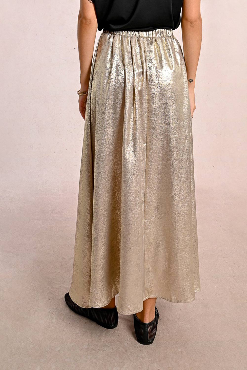 Shine like a star in this stunning long golden skirt, crafted to catch the light and turn heads with every step! Featuring a versatile elastic waistband for a customizable fit and a flattering A-line cut, this skirt is perfect for adding a touch of glamour to any occasion!
