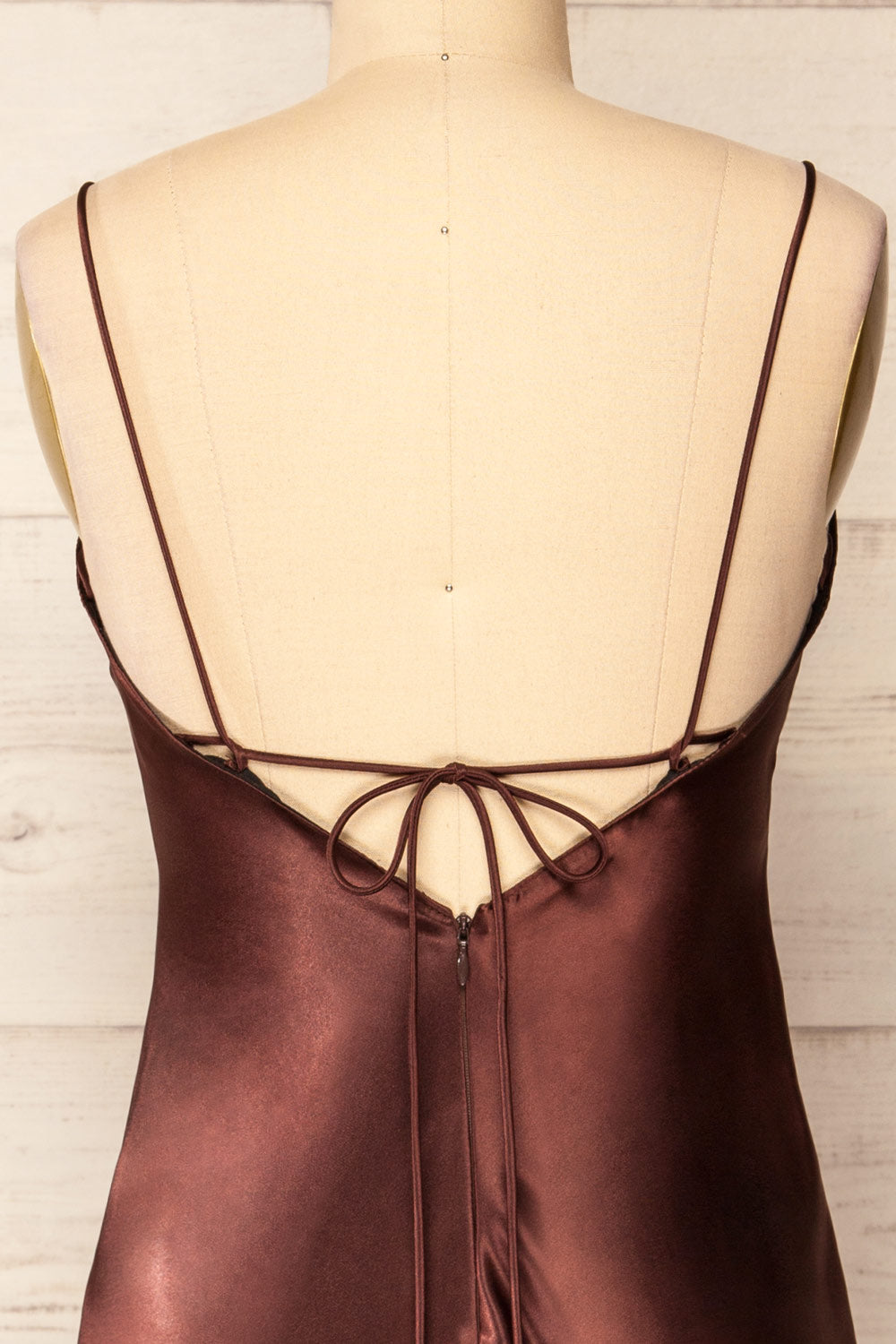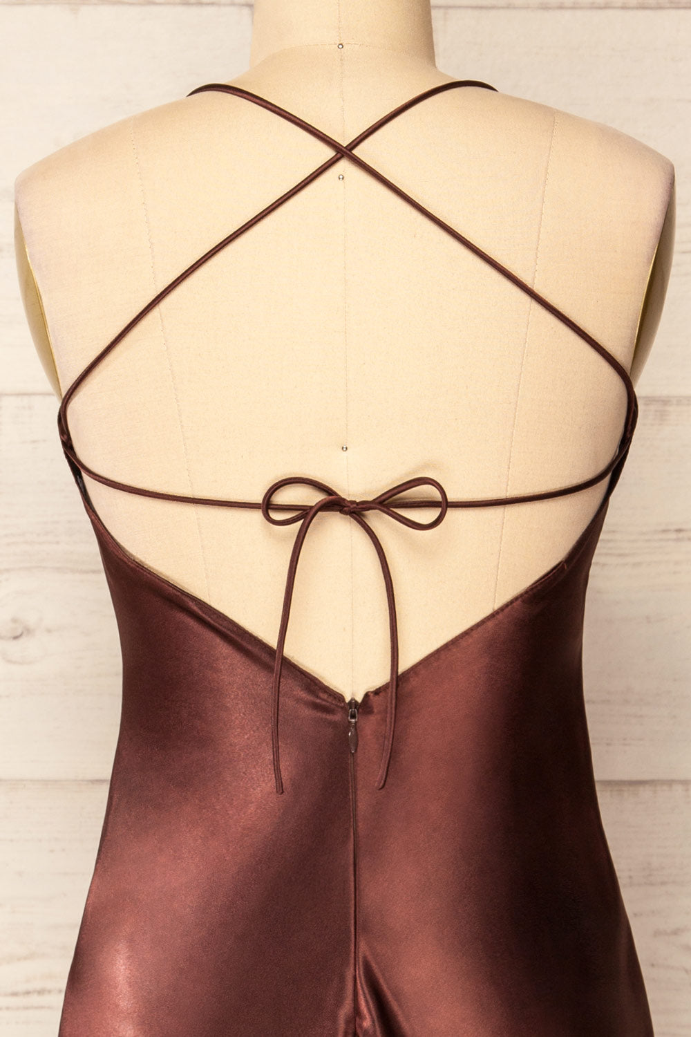This sumptuous dress made in Montreal by Arti Gogna pulls its richness from its simplicity! Its flowing cut follows the curves of your figurein a divine way. The open back will elegantly show off your skin. Pair it with your favourite high heels to be ready for any special occasion.