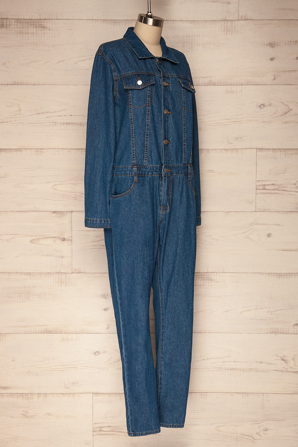This denim coverall jumpsuit is not only practical, but super versatile! Buttons down the front of the bodice and a zipper at the rise make it easy to slip on. You'll appreciate the loose fit, as well as the belt loops which let you cinch your waist if desired. Utilize all the pockets to keep your little daily essentials close at hand. Funk it up with big hoop earrings and heels!