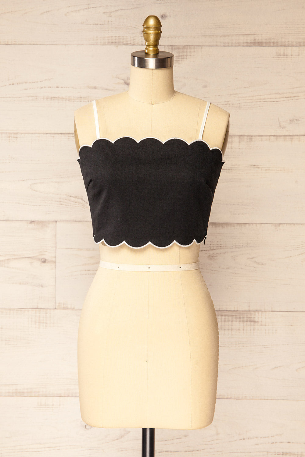Kalila | Black Cropped Top w/ Scalloped Hemline