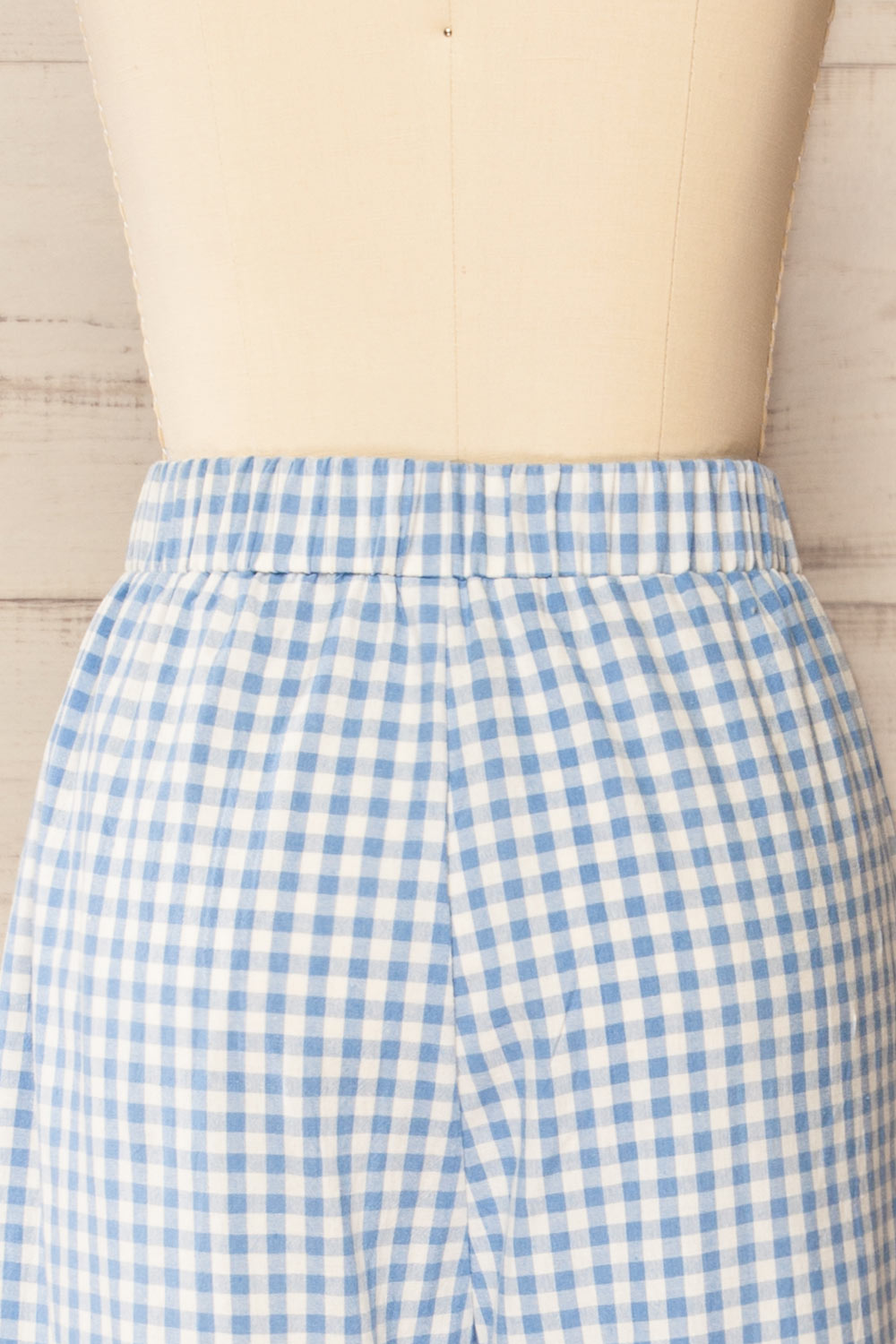 Khola | Wide-Leg Blue Gingham Pants with Pockets